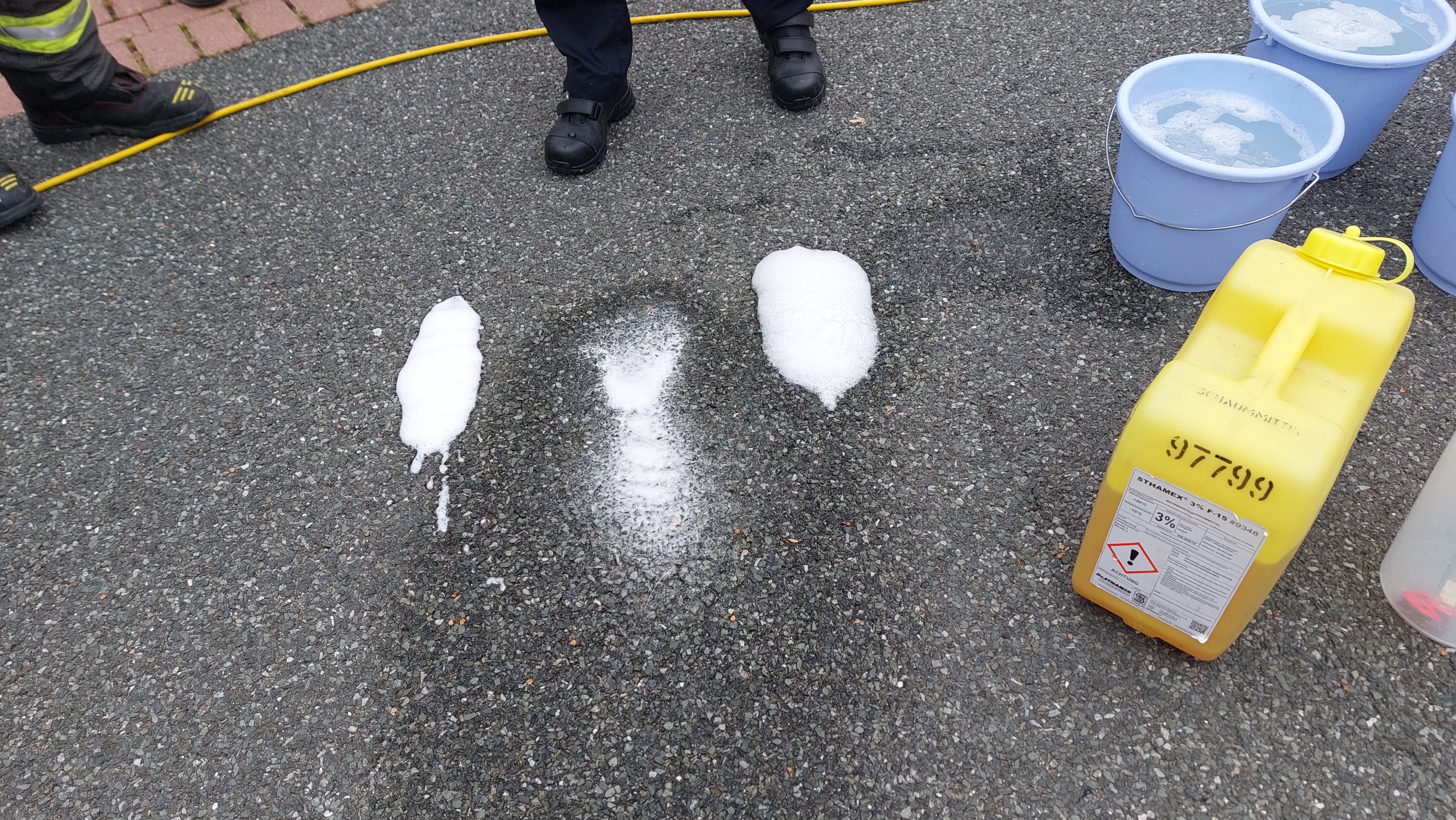 Hier konnten wir mit dem Schaumtrainer der Kreisbrandinspektion unsere Erfahrungen bei Einsätzen mit Löschschaum auffrischen und vertiefen. Was vom Übungsaufbau wie Spielzeug oder Puppenkiste wirkt, ist aber ein wertvolles Mittel, um die eingesetzte Schaummittelmenge und damit eine potentielle Umweltbelastung zu minimieren - sich aber trotzdem praxisnah auf entsprechende Brandeinsätze und die verschiedenen Vorgehensweisen vorbereiten zu können.