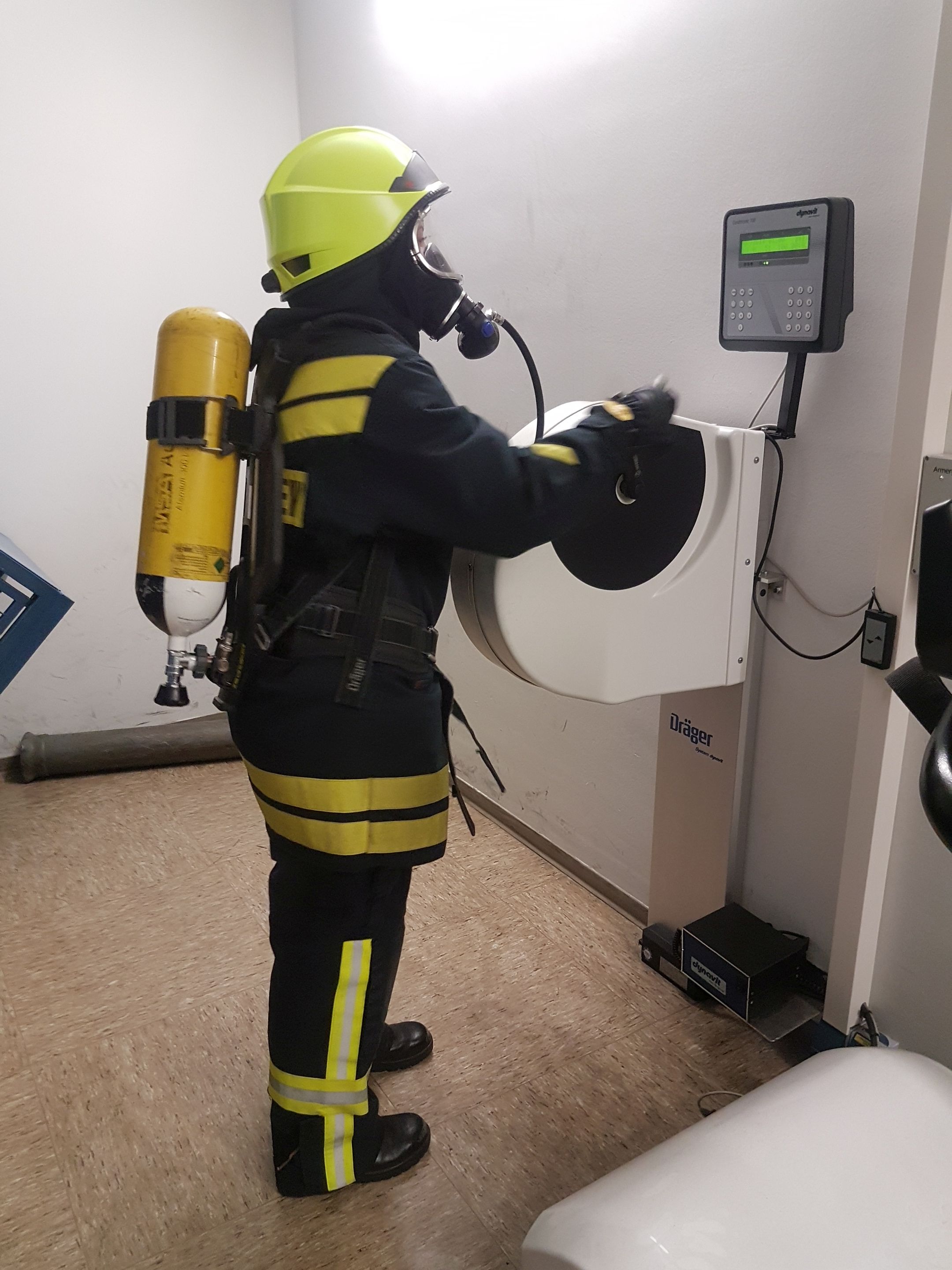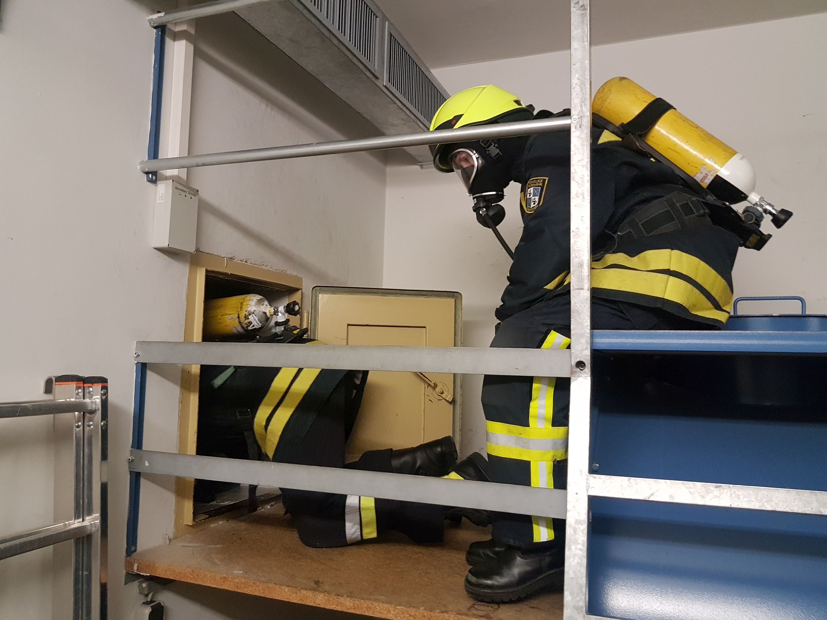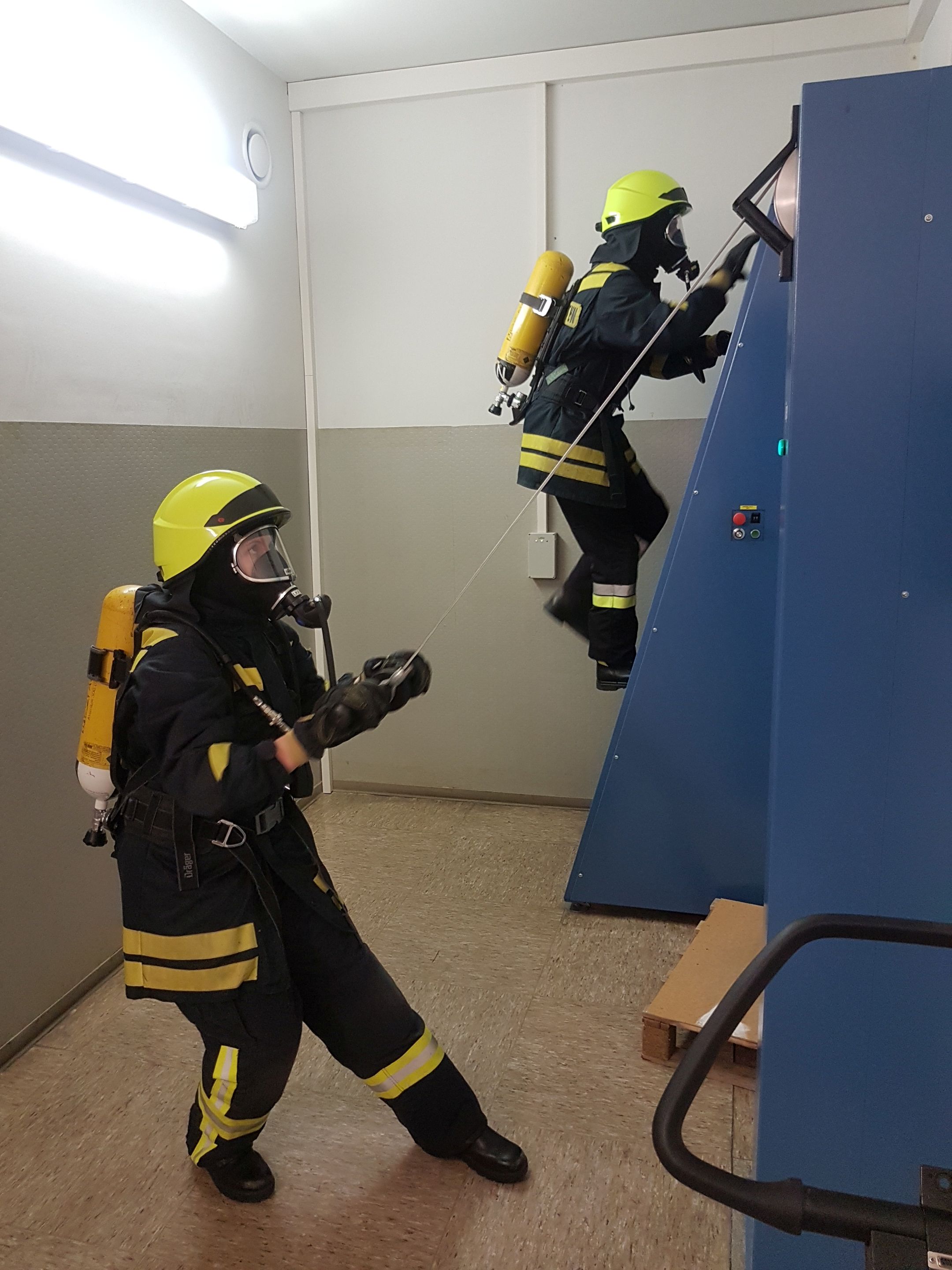 .... und am Ende der Übungsstrecke wird -weil's so schön war- die Atemschutzflasche gegenseitig gewechselt und es geht in die zweite Runde: