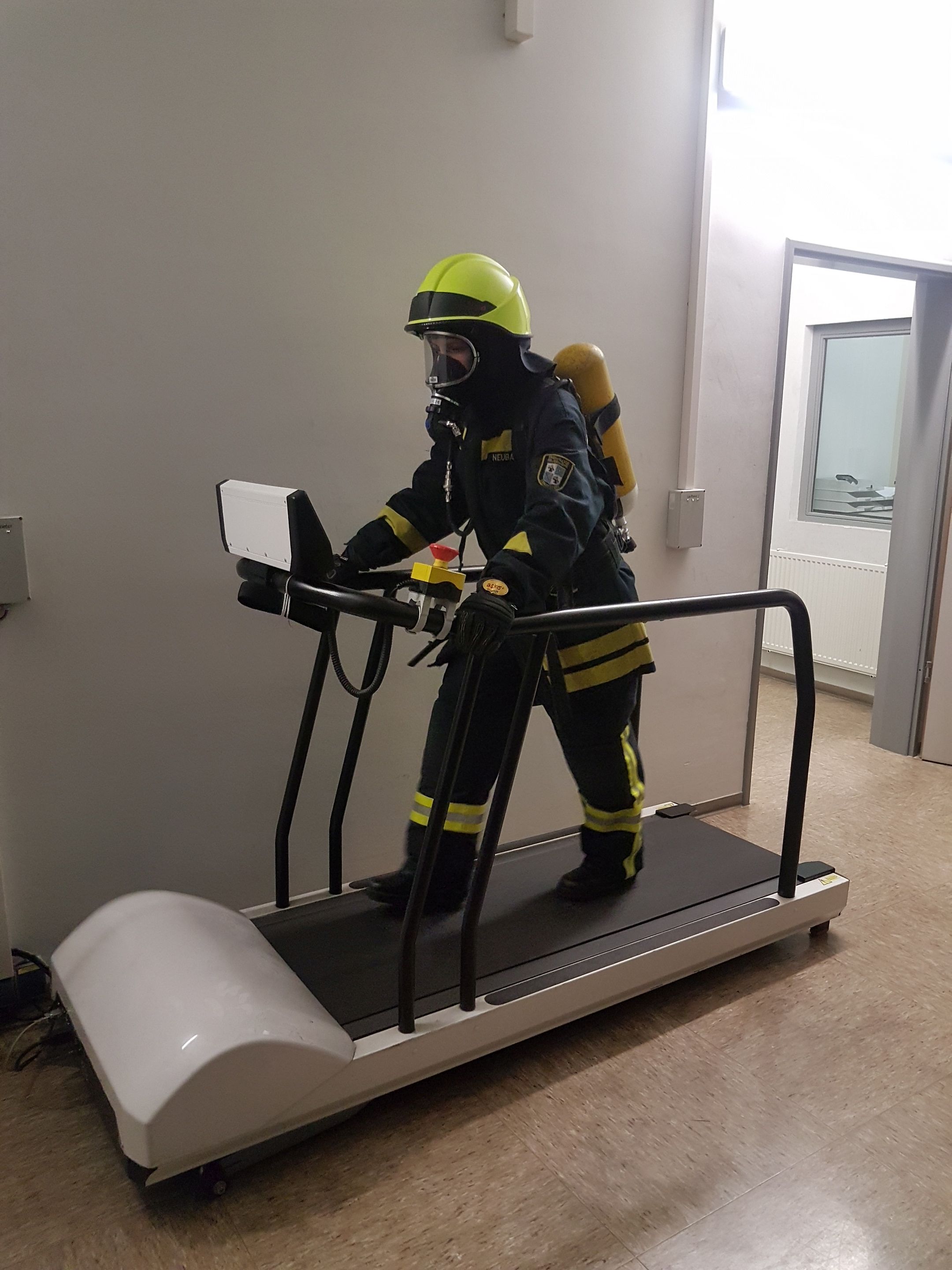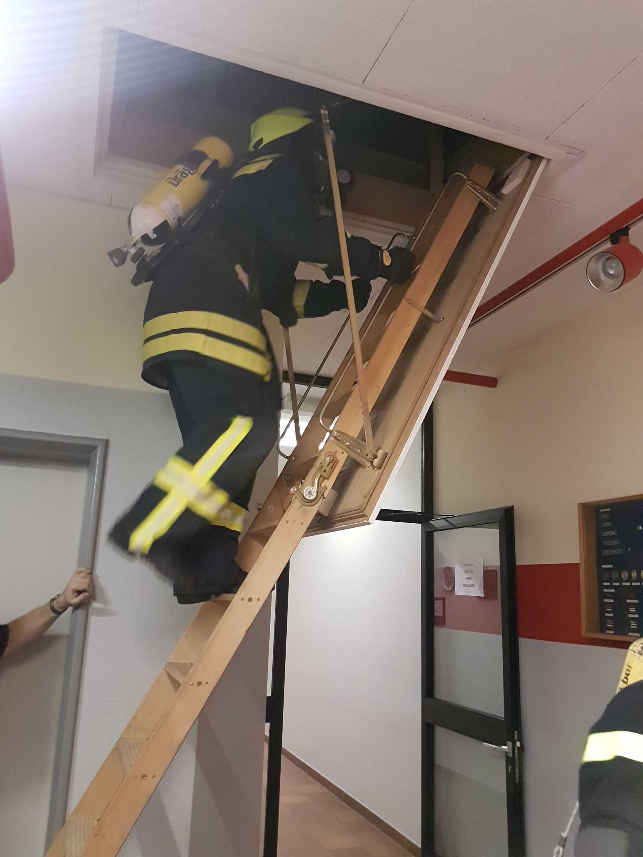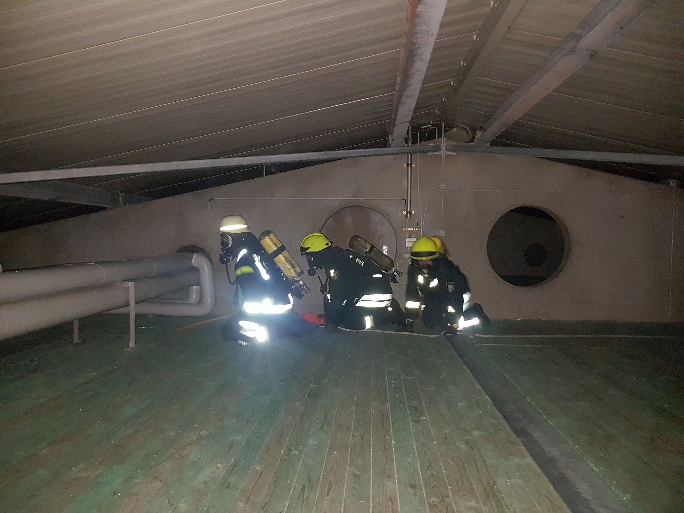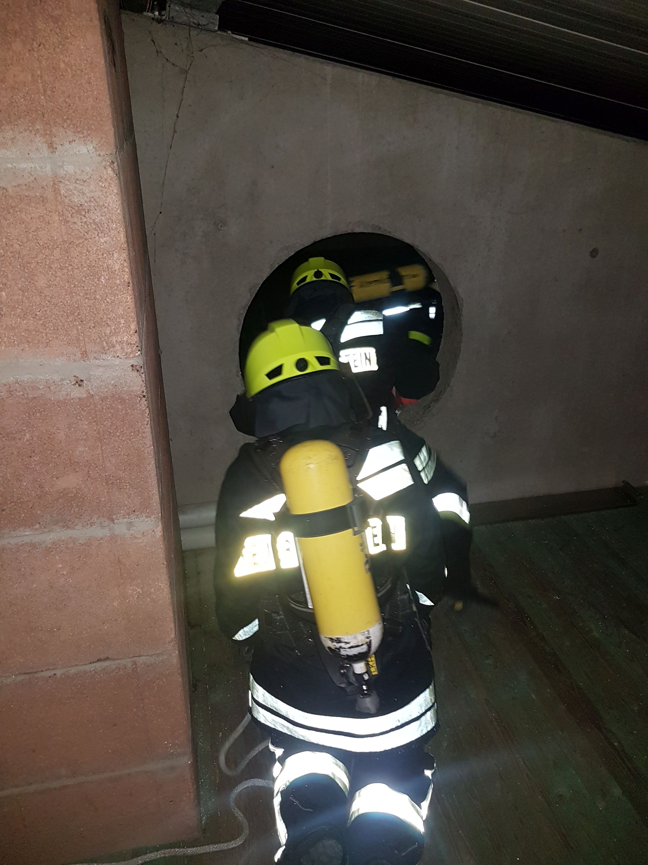 .... und am Ende der Übungsstrecke wird -weil's so schön war- die Atemschutzflasche gegenseitig gewechselt und es geht in die zweite Runde: