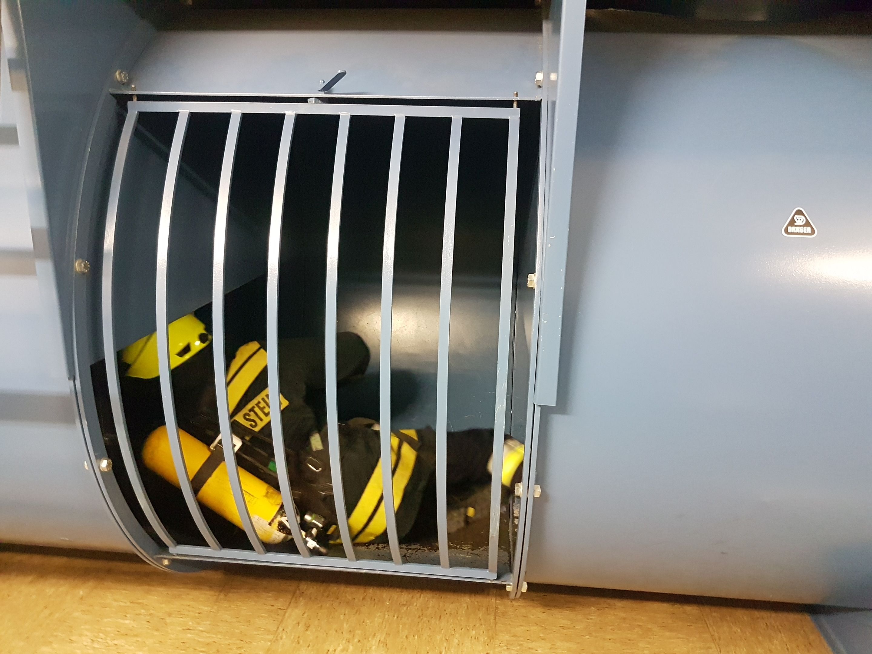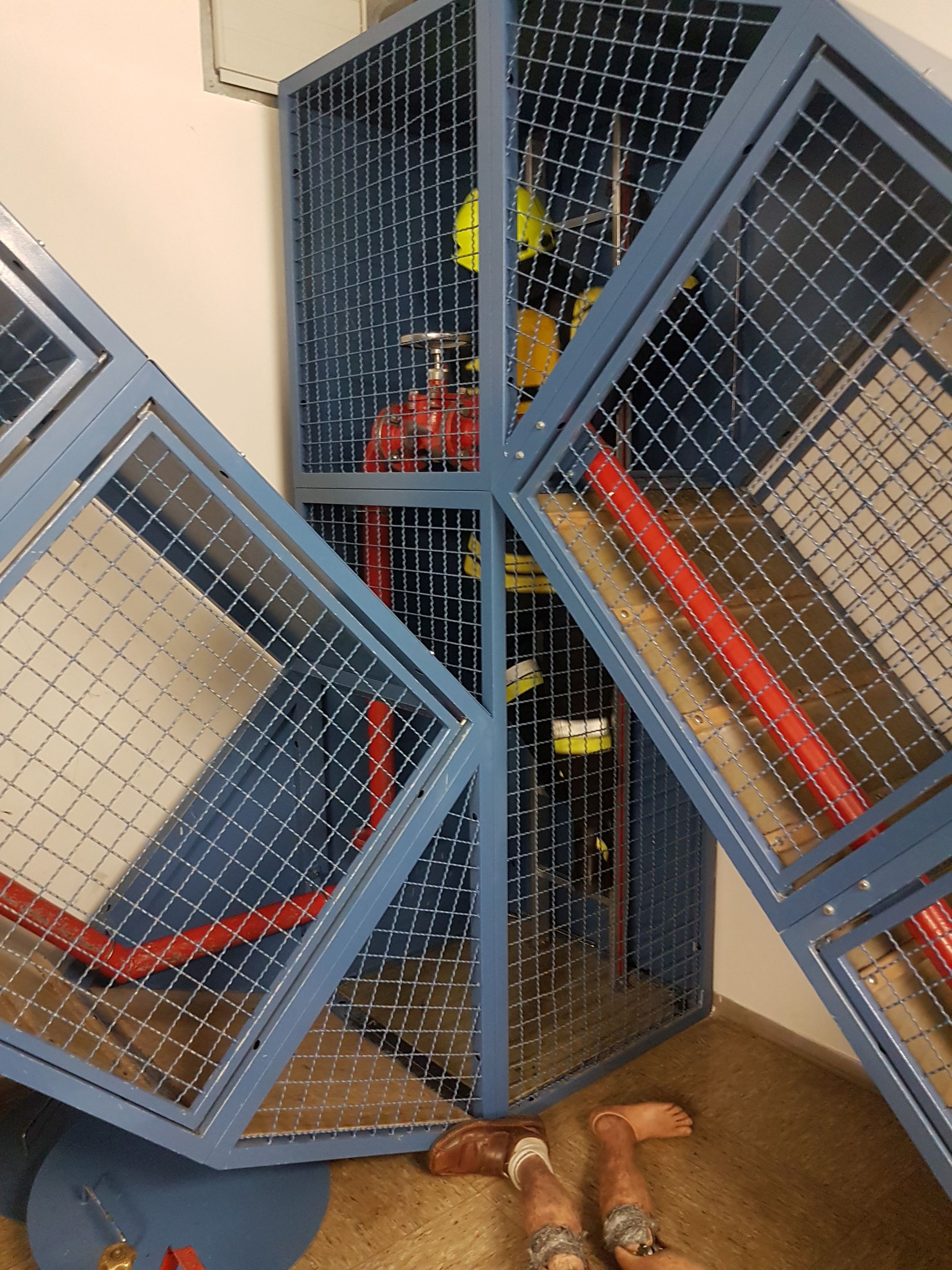 ... und weiter in den auf 180°C aufgeheizten ersten Übungsraum mit seinem Kriechtunnel und Klappen ....
