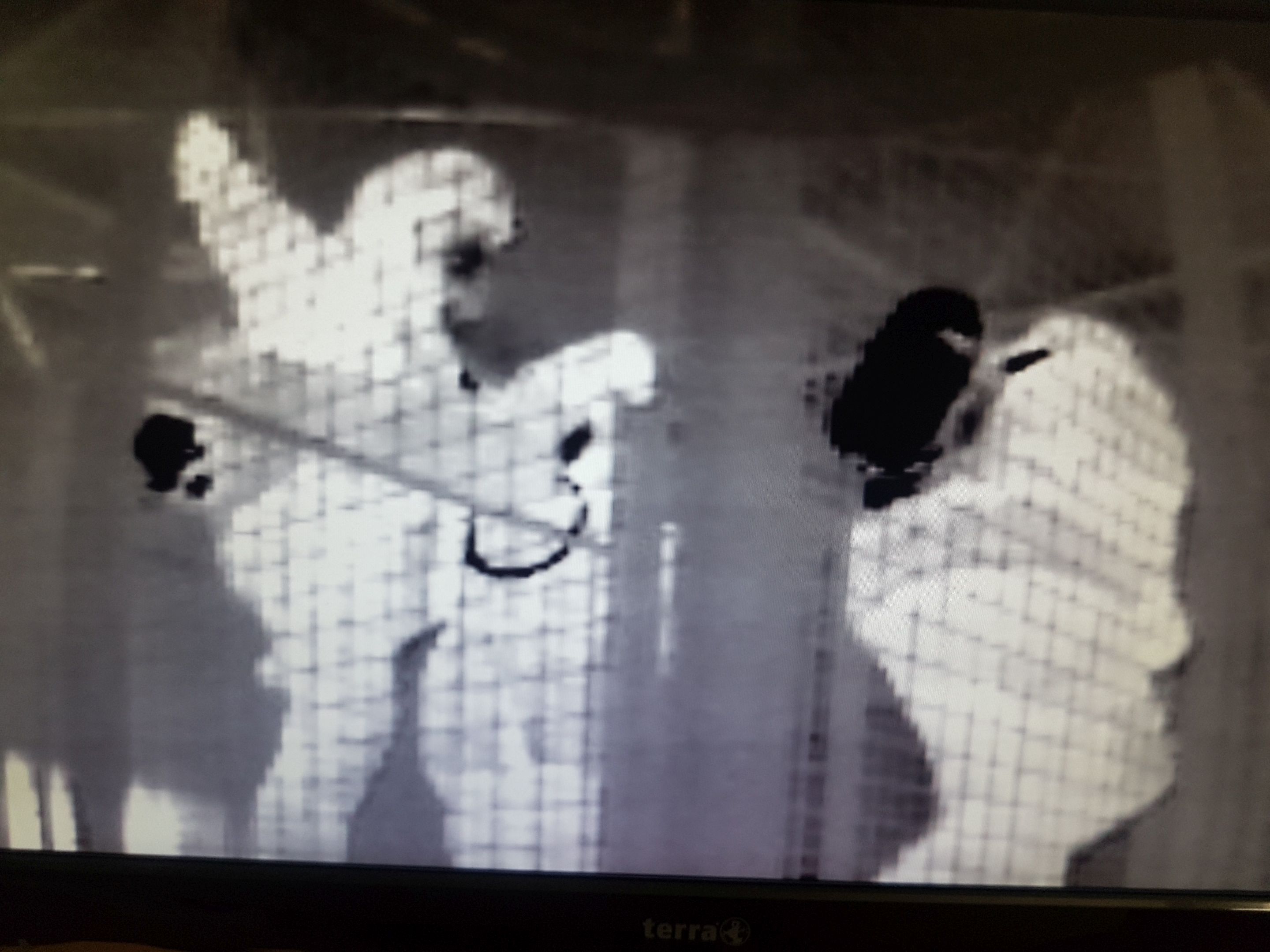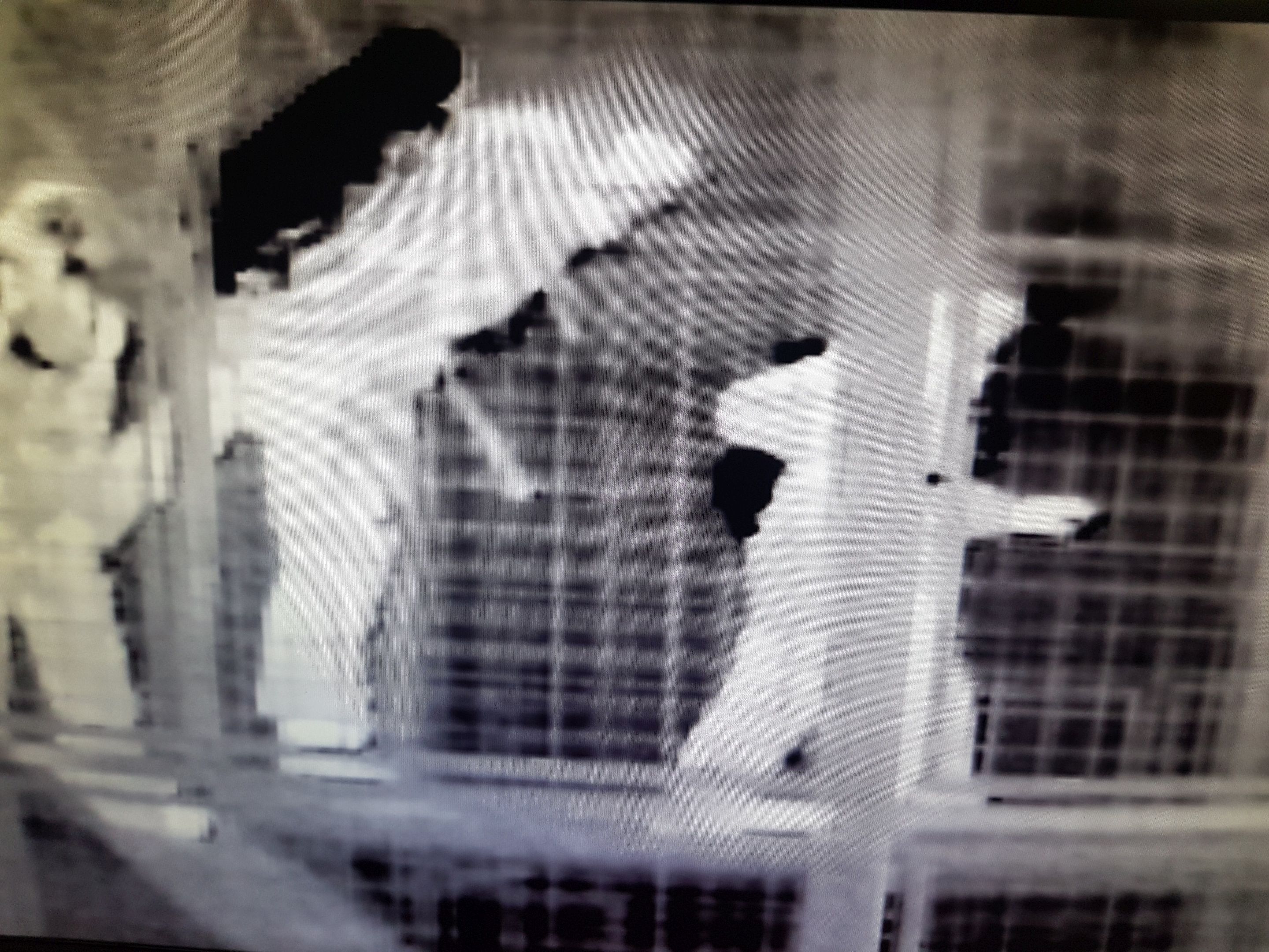 ... und direkt in die hindernisgespickte und stockdunkle Übungsstrecke (im Wärmebild ist rechts z.B. eine ca. 3m lange Röhre zu sehen, die durchquert werden muss) ...