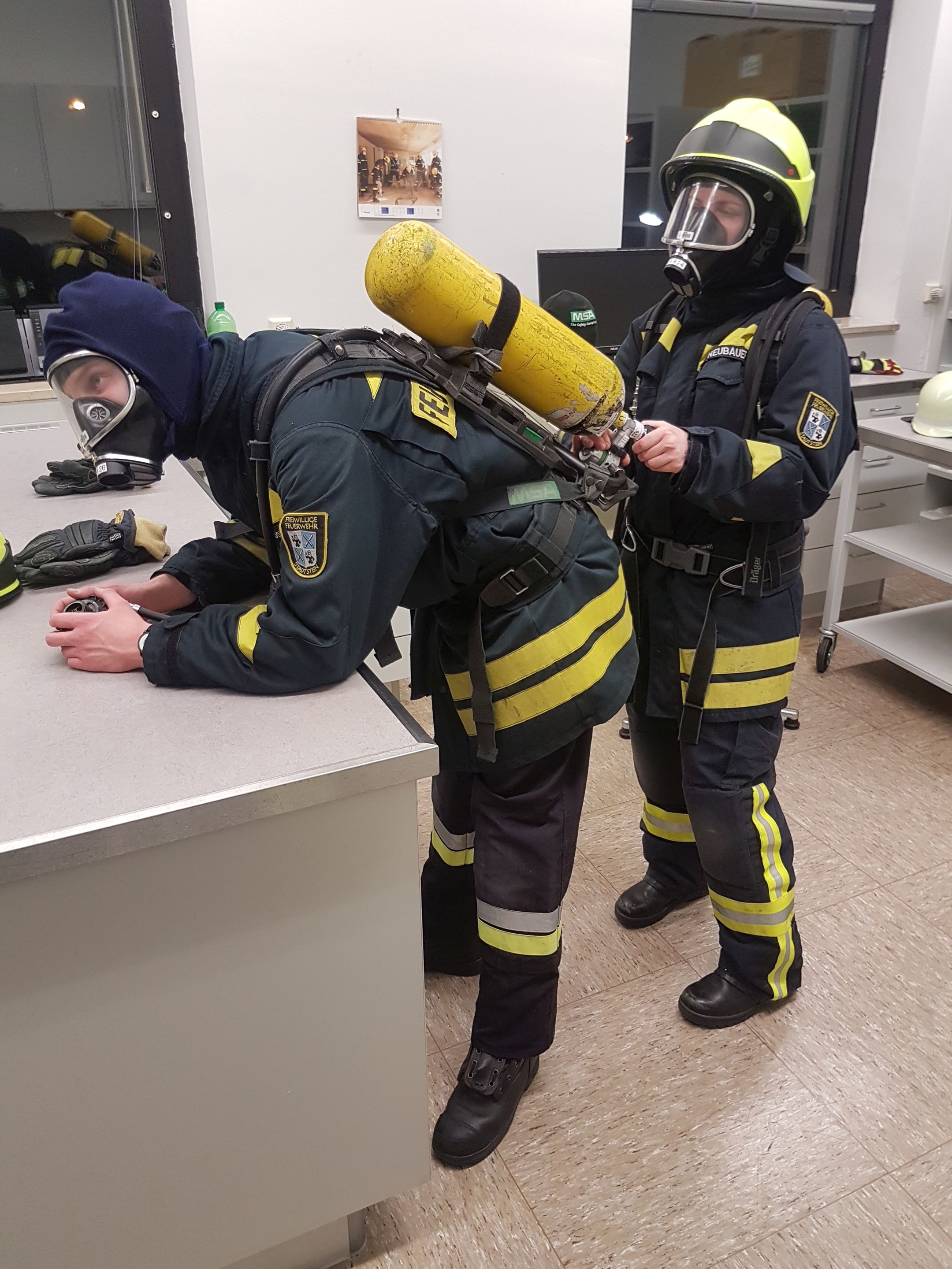 Derzeit nehmen zwei Kameraden, Jenny Neubauer und Andre Sommer, an der Ausbildung zum Atemschutzgeräteträger teil, die an der Atemschutzzentrale des Landkreises Fürth in Oberasbach durchgeführt wird.