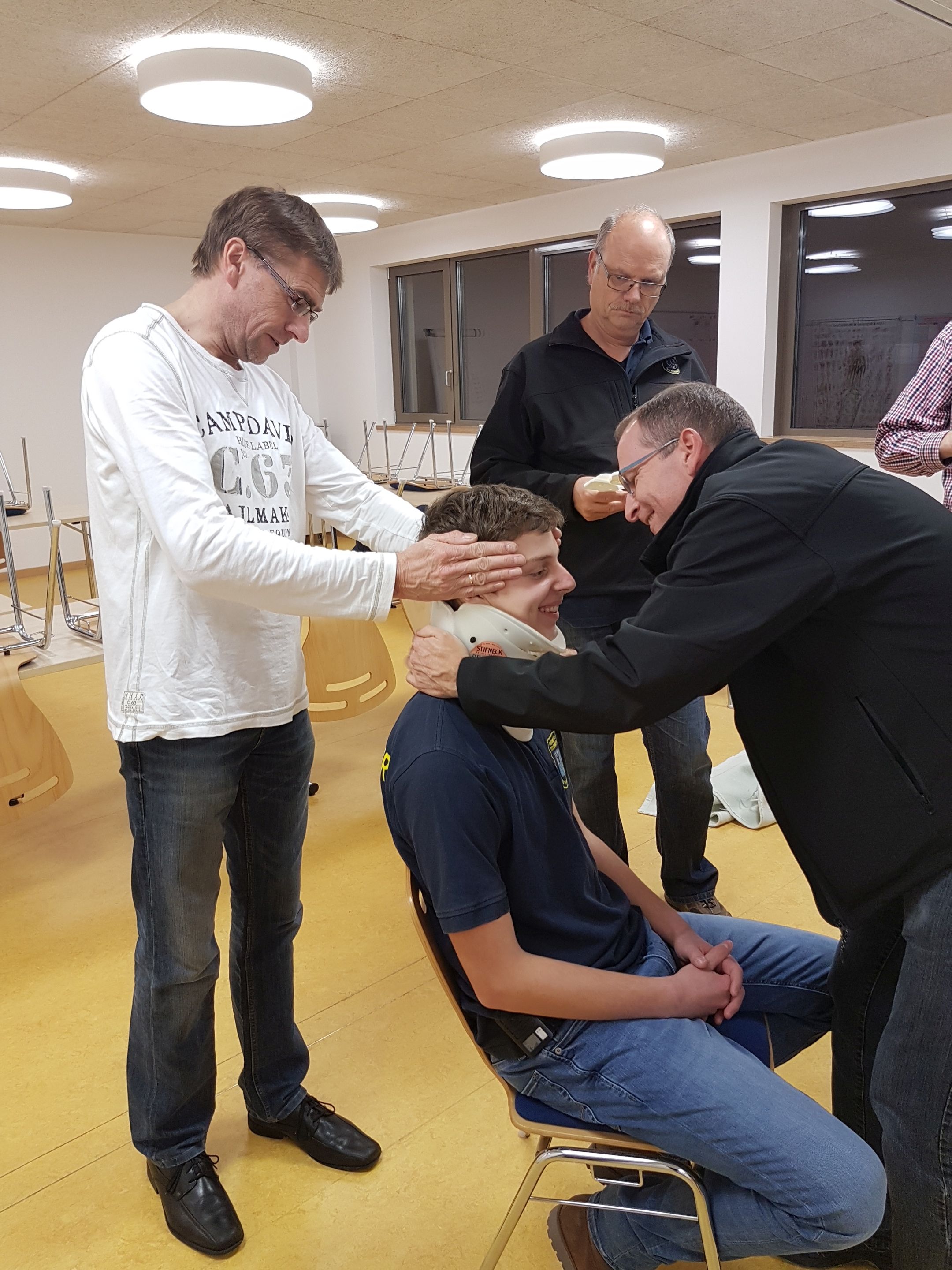 Auch das Anlegen einer Halswirbelsäulenschiene (sog. Stifneck) wurde geübt sowie ....
