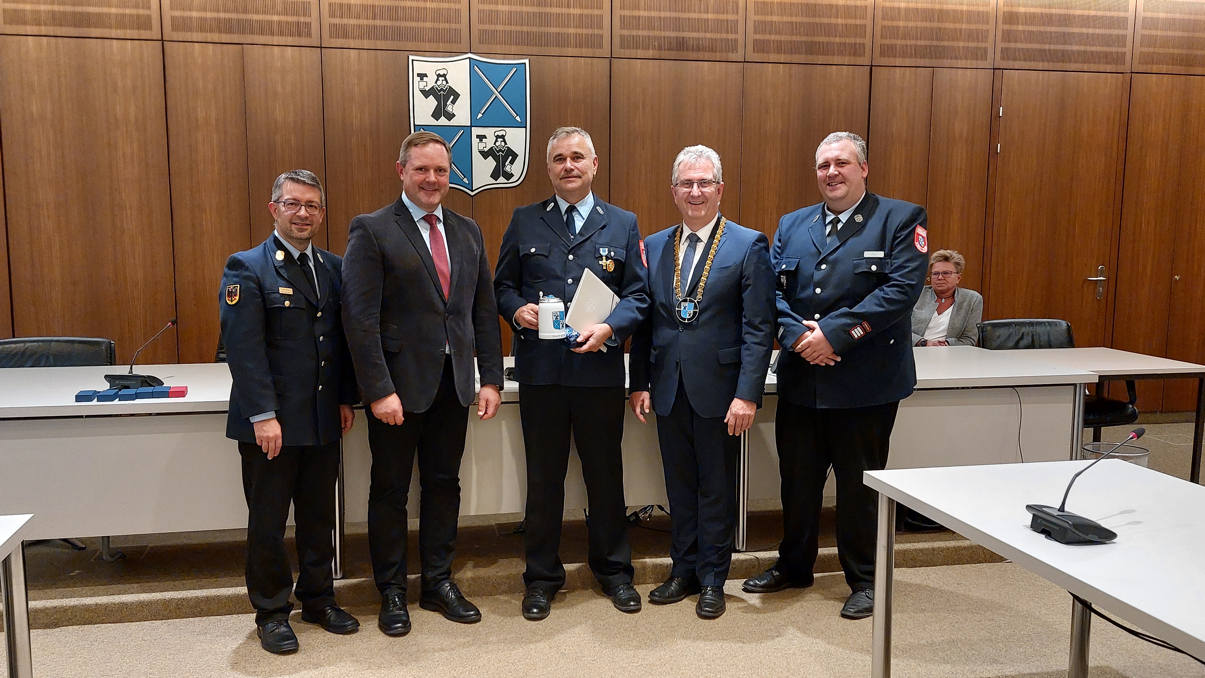 Den Anfang machte die staatliche Ehrung mit dem Feuerwehr-Ehrenabzeichen für langjährige Verdienste in der Feuerwehr.