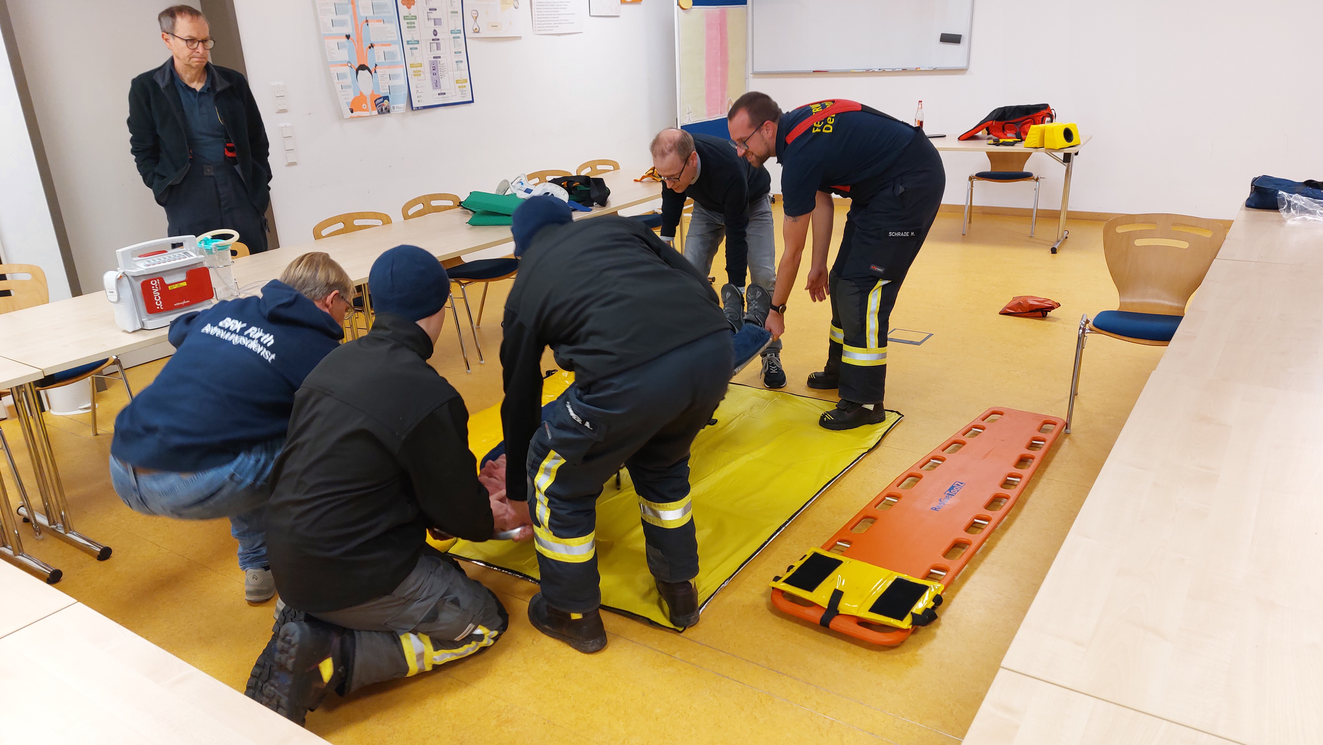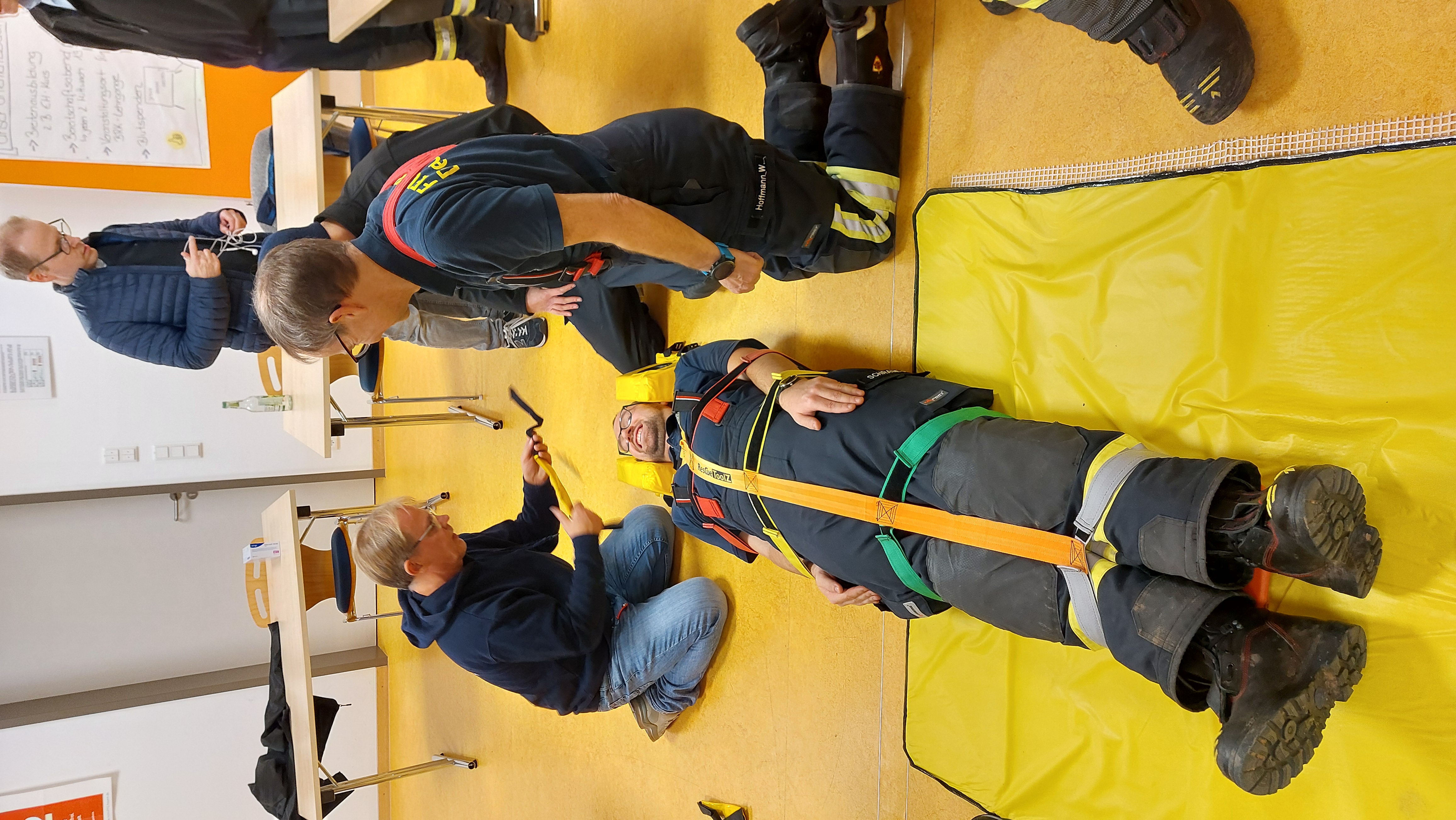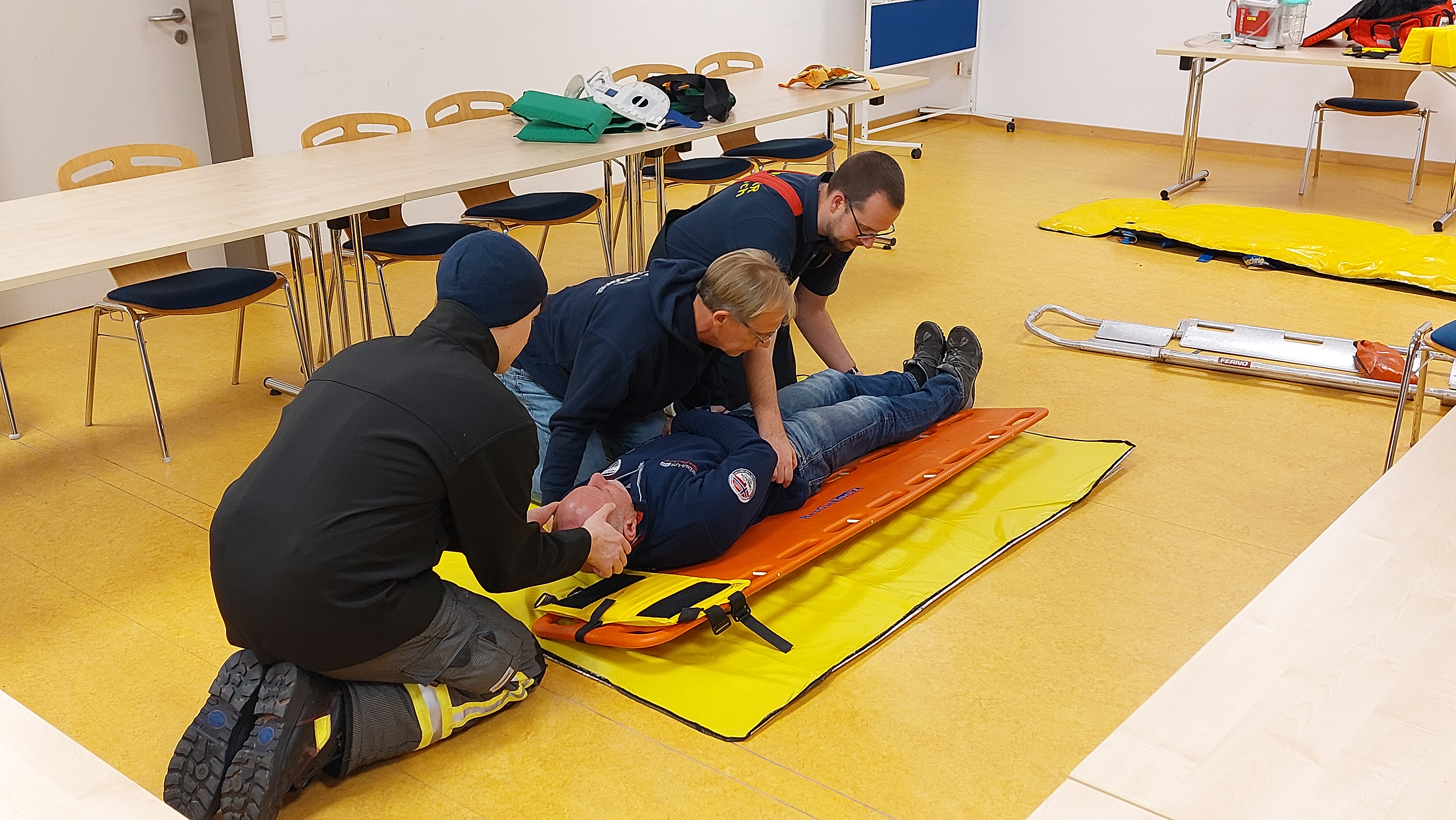 Hier haben wir bei den Kameraden der BRK Bereitschaft Stein Anwendungsmöglichkeiten und Grenzen von verschiedenen Hilfsmitteln wie Schaufeltrage, Spinboard und Vakuummatraze kennengelernt und die Unterstützung in der Zusammenarbeit von Rettungsdienst und Feuerwehr geübt. Ein für uns sehr praxisnaher Abend, da wir in Einsätzen öfters damit "konfrontiert" werden.