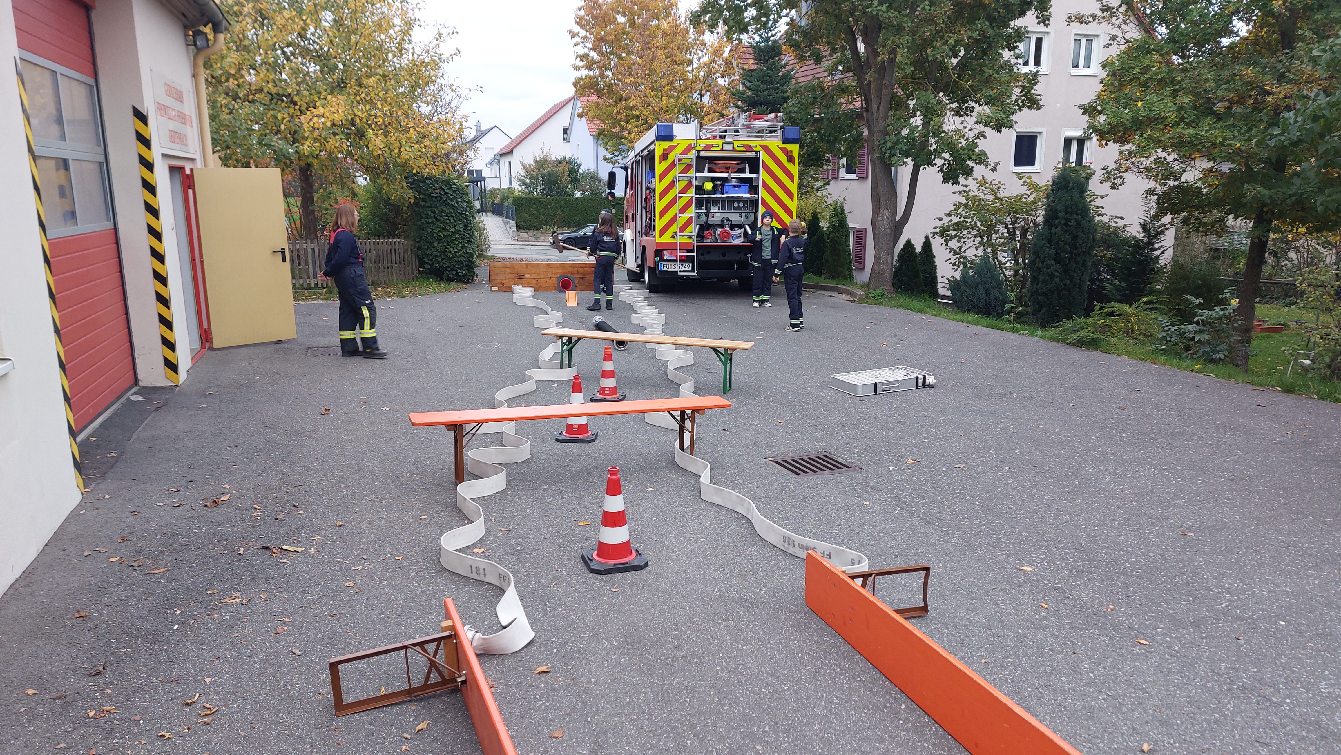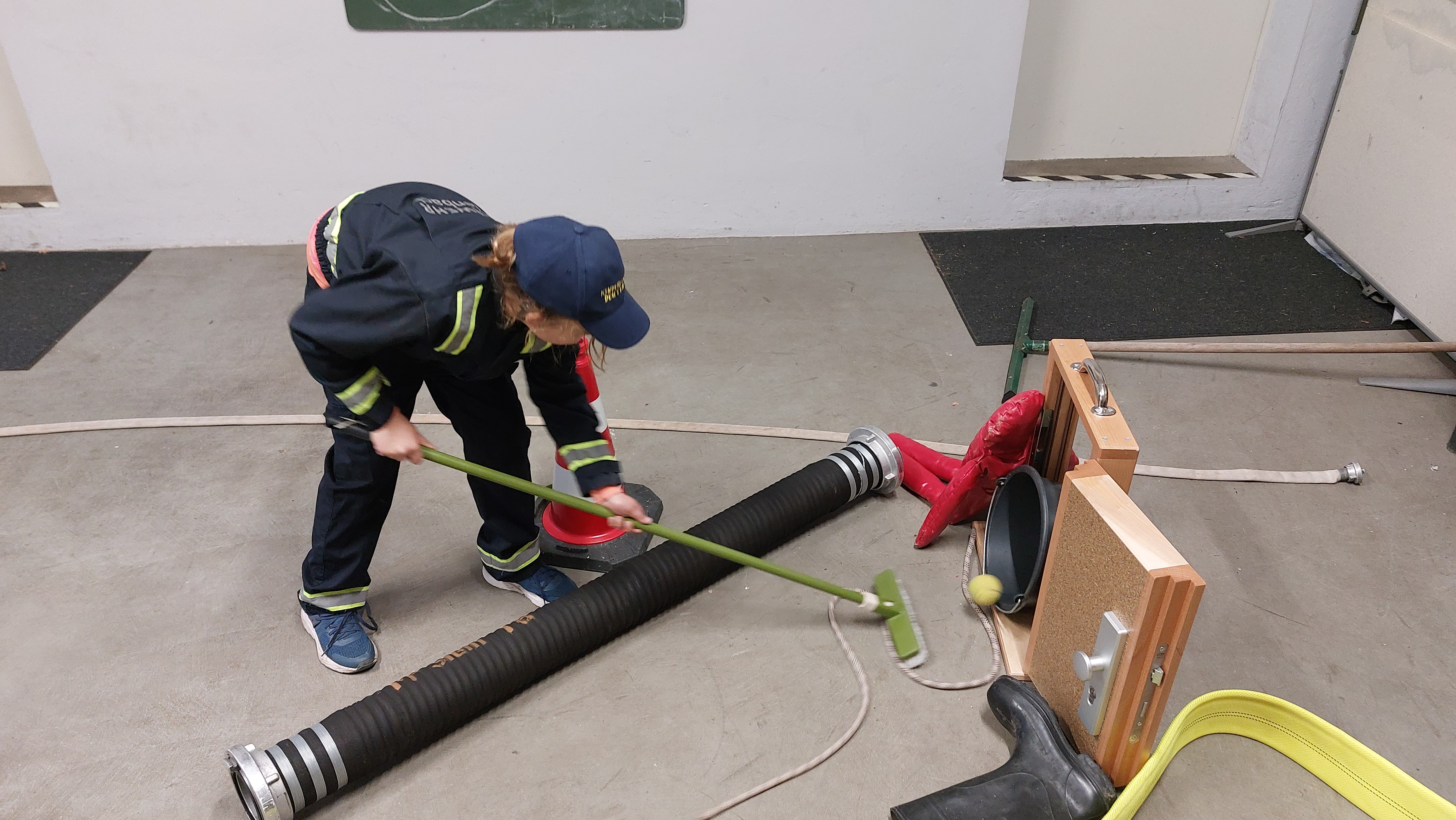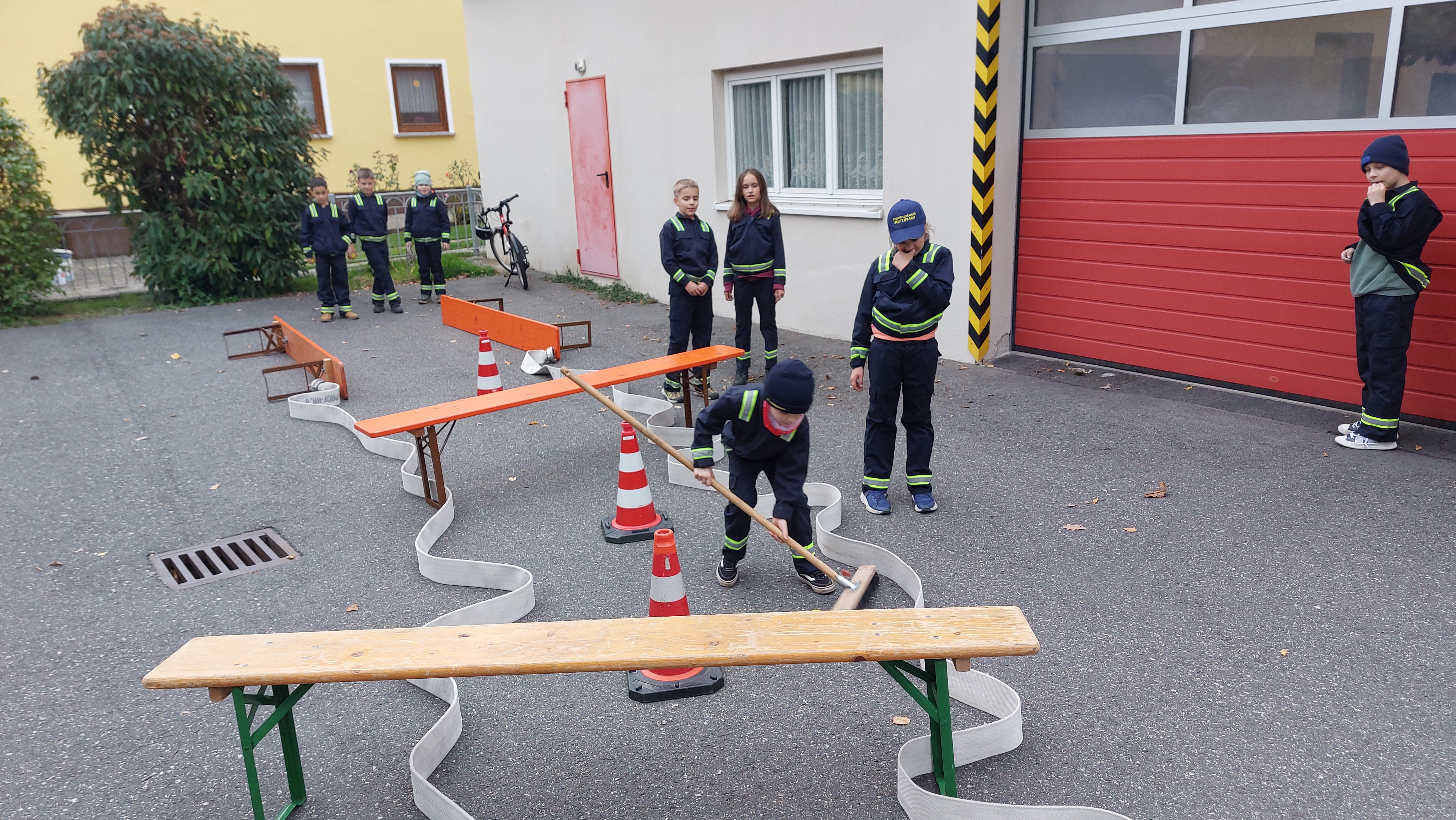 Los ging es mit einer spielerischen Gerätekunde für den Nachwuchs. Nach dem Aufteilen haben sich die beiden Gruppen jeweils in einem Brainstorming einen Minigolf-Parcours überlegt, den sie mit Material aus dem Löschfahrzeug und dem Gerätehaus dann umgesetzt haben.