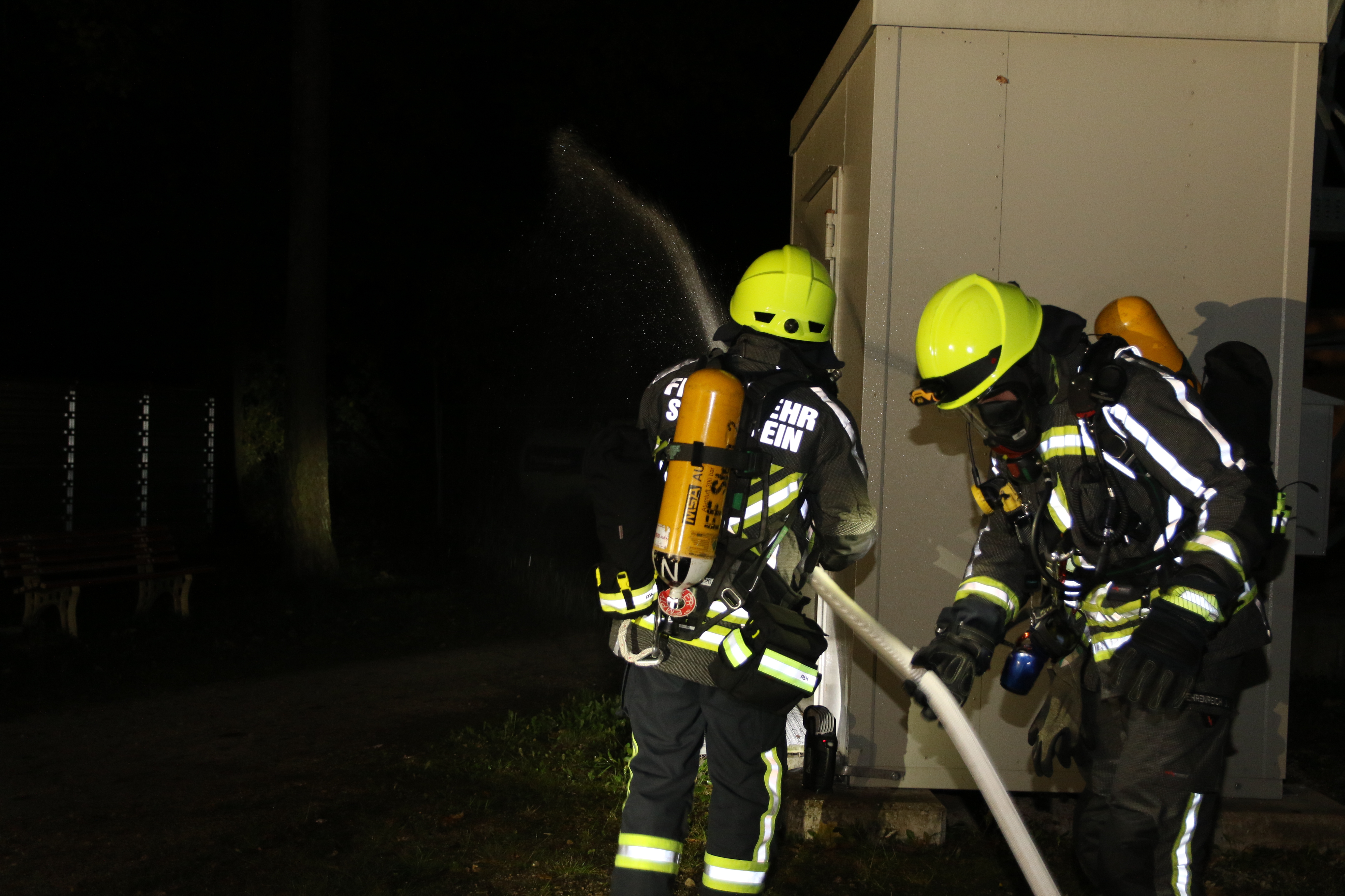 Dann wurde zeitnah durch die Mannschaft aus Deutenbach ein Strahlrohr vorgenommen, um -aus einer Deckung heraus- das austretende Gas niederzuschlagen und damit einer Entzündungs- und Explosionsgefahr vorzubeugen.