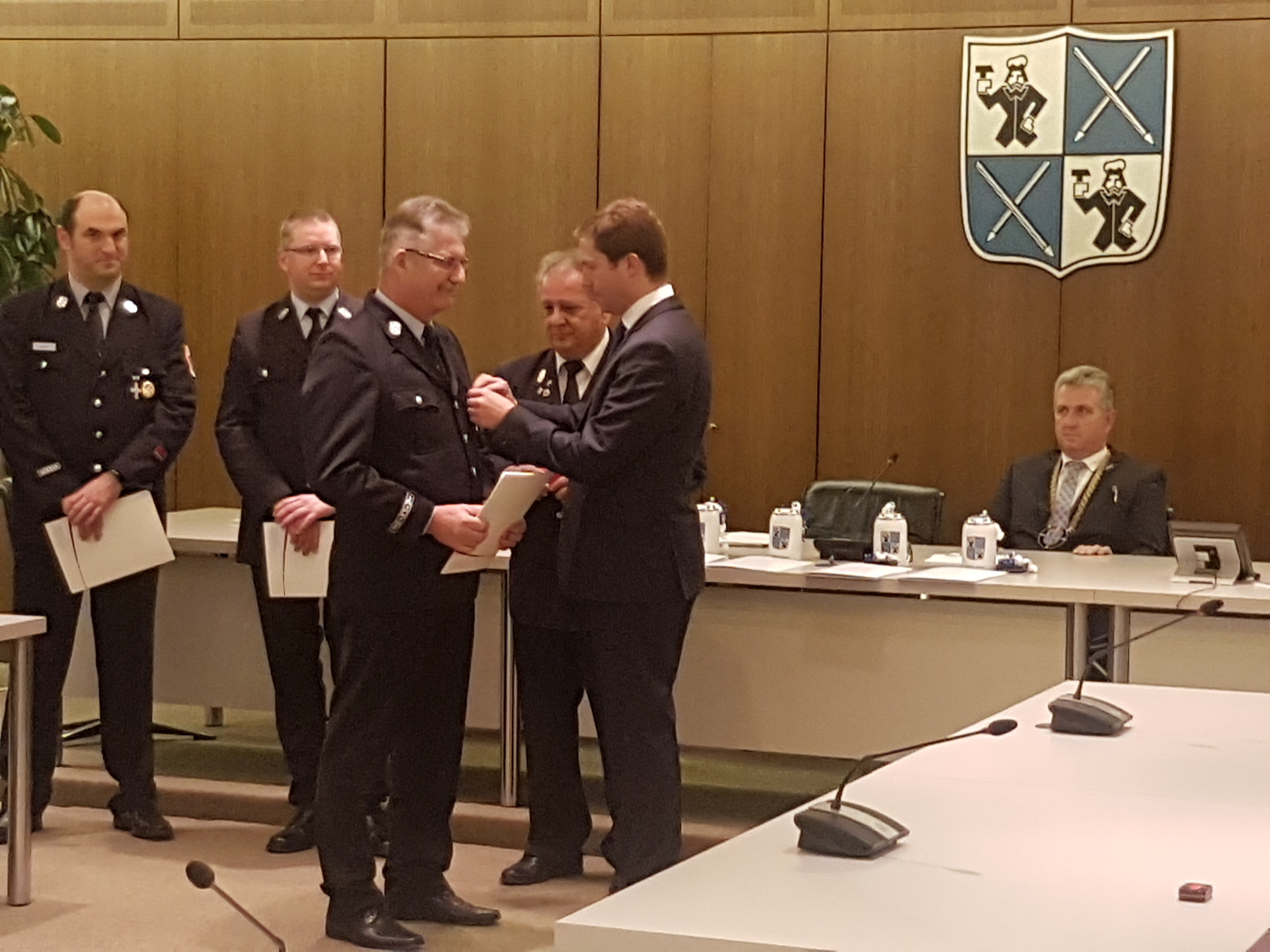 Am 11.10.2017 wurde -neben Kameraden aus weiteren Steiner Wehren- unser 1. Vorsitzender Klaus Hörauf für 40 Jahre aktives ehrenamtliches Engagement in der Freiwilligen Feuerwehr mit dem Staatlichen Feuerwehrehrenzeichen in Gold geehrt. Die Ehrung wurde, stellvertretend für den Bayerischen Staatsminister des Inneren, durchgeführt durch den Landrat des Landkreises Fürth, Matthias Dießl.