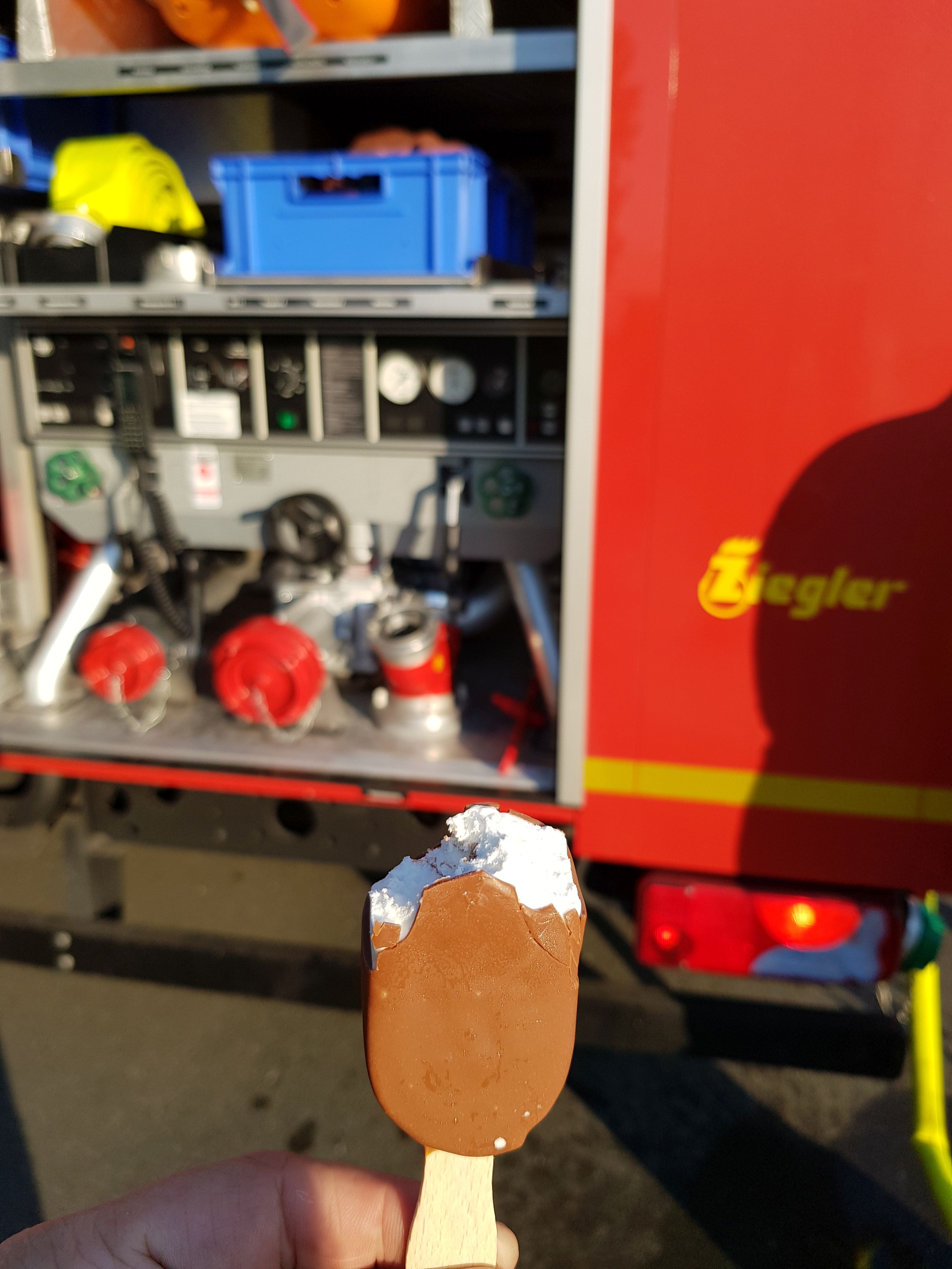 Dankenswerterweise wurden wir während des Gießens von Anwohnern mit einem Eis versorgt, was bei den Temperaturen eine willkommene Erfrischung war!