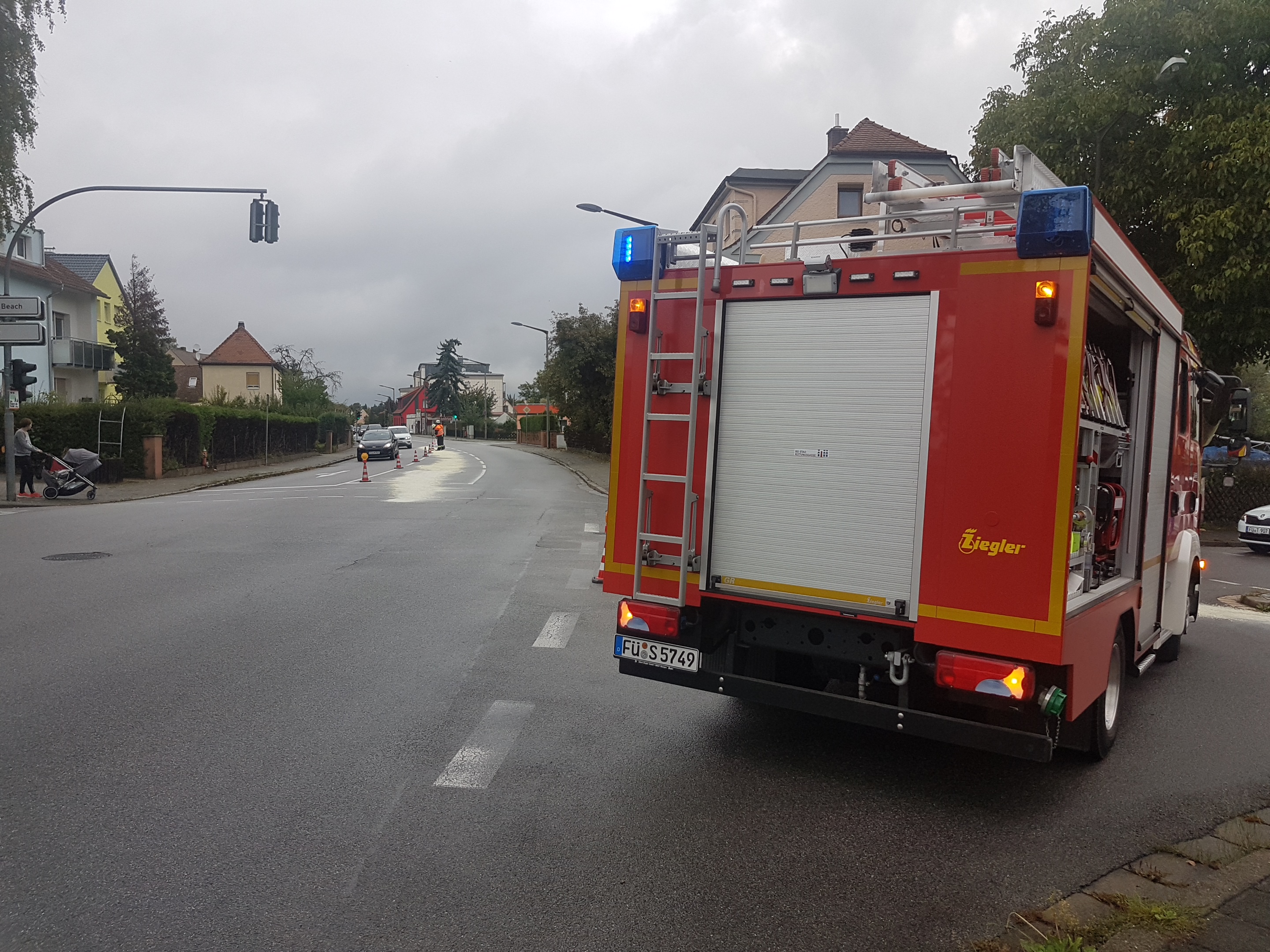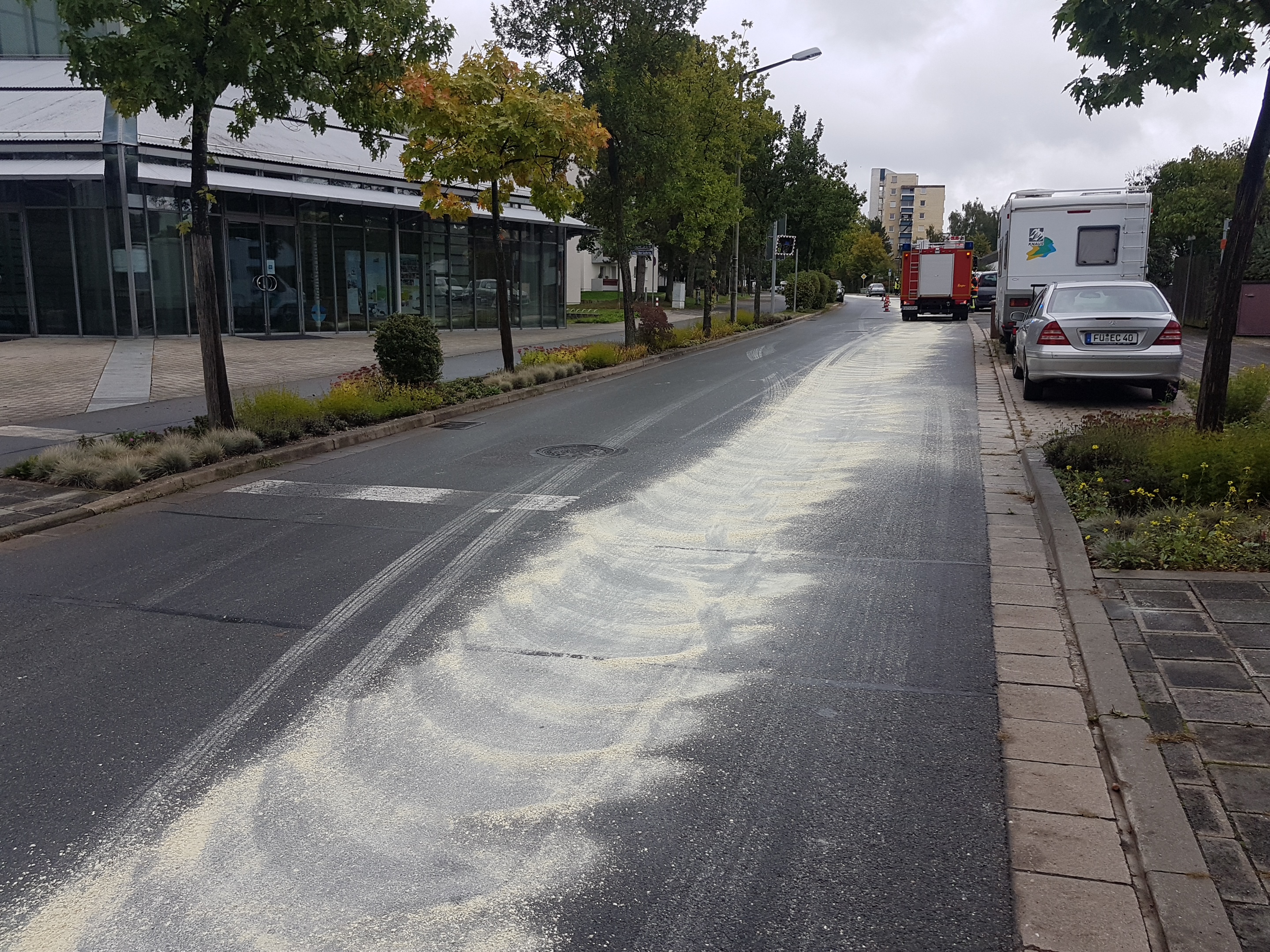 Von der Hauptstraße über die Deutenbacherstraße und Schillerstraße bis zum Paul-Gerhardt-Weg wurde eine längere Spur von Betriebsstoffen verursacht. Die Dieselspur wurde von uns im Bereich Kreuzung Deutenbacher Str/ Schuillerstraße bis Paul-Gerhardt-Kirche mit Bindemittel abgestreut sowie an kritischen Stellen abgesichert. Von Seiten der Polizei wurde der Verursacher festgestellt.