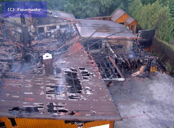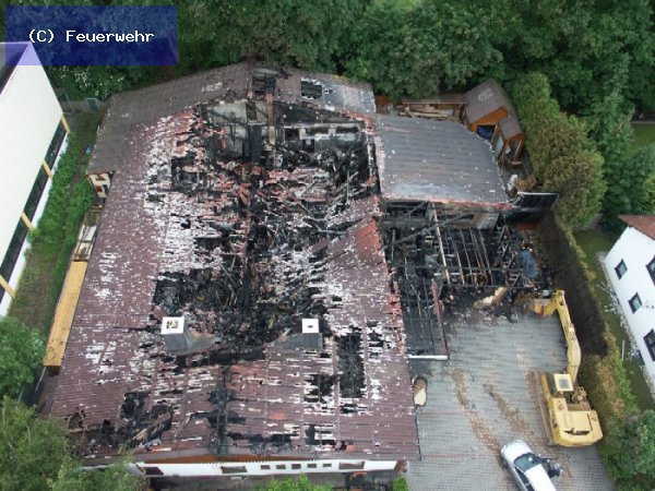 Bei Eintreffen der Einsatzkräfte stand bereits ein Firmengebäude in Vollbrand. Eine Schreinerei sowie ein metallverarbeitender Betrieb brannten bis auf die Grundmauern ab, der geschätzte Schaden beläuft sich auf ca. 3 Mio. €. Durch die Feuerwehren aus Stein, Roßtal, Oberasbach und der Berufsfeuerwehr Nürnberg mit insgesamt 124 Kräften konnte das benachbarte Wohnhaus sowie eine Lagerhalle gehalten werden.