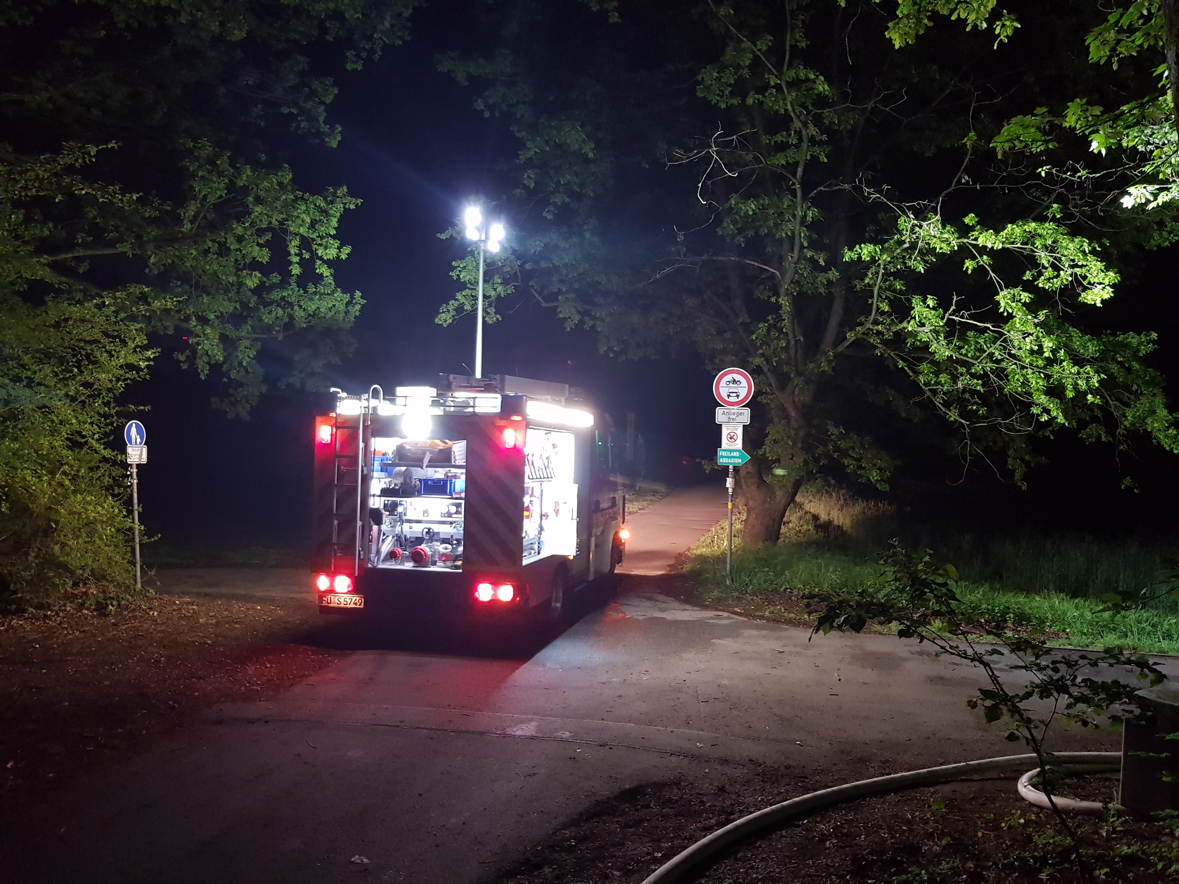 Wir unterstützen bei der Verlegung der langen Schlauchstrecke zur Wasserversorgung und holten anschließend den GW-L von der Wache Stein mit der zusätzlichen Atemschutzausrüstung.