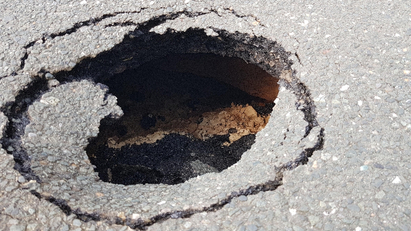 Gemeldet war ein ca. 30x30cm großes Loch in der Goethestraße, das sich vor Ort bestätigte und als ca. 2m tiefe Aushöhlung unter der Fahrbahndecke fortsetzte.