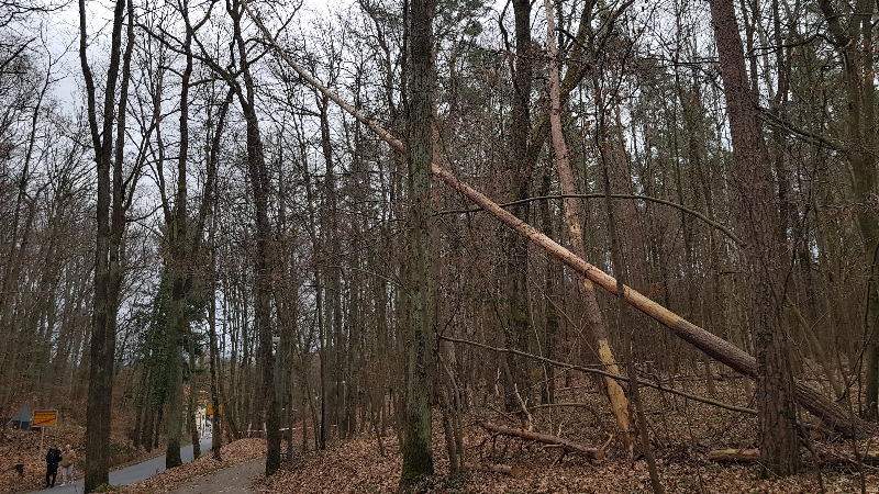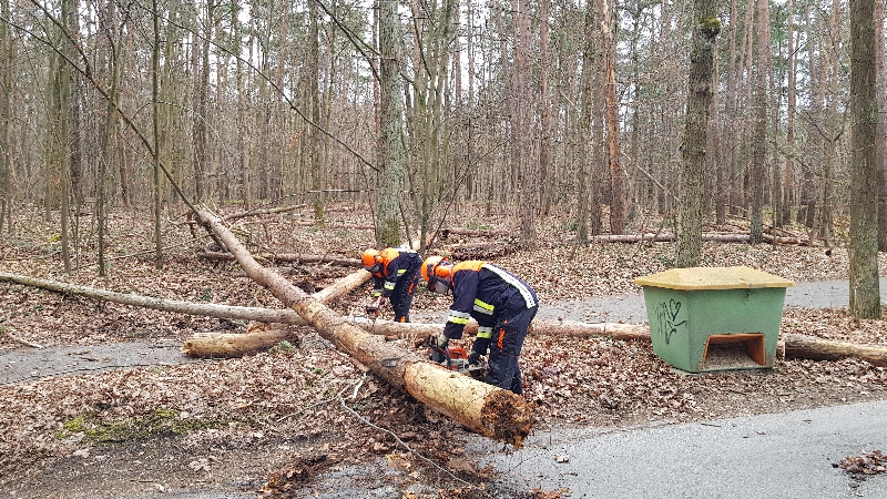 Zwei Bäume, die nach den Stürmen der letzten Tage zu stürzen drohten, wurden im Rahmen der Gefahrenabwehr mit Hilfe der Fahrzeugwinde des HLF der Feuerwehr Stein niedergelegt und endgültig zu Boden gebracht.