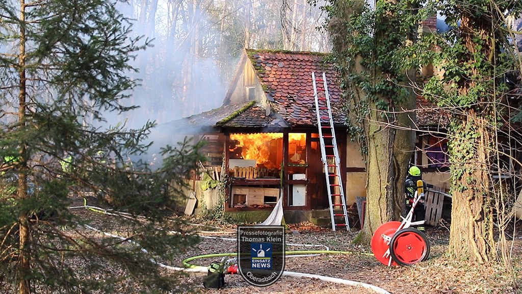 Heute wurden wir zusammen mit der Feuerwehr Stein zum Brand eines leerstehenden Gebäudes im Wald Richtung Gerasmühle alarmiert, das kurz nach dem Eintreffen bereits im Vollbrand stand.