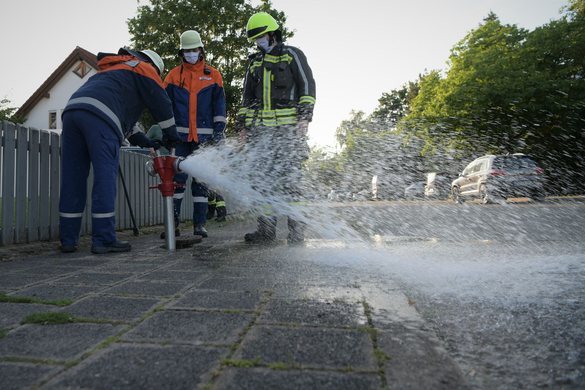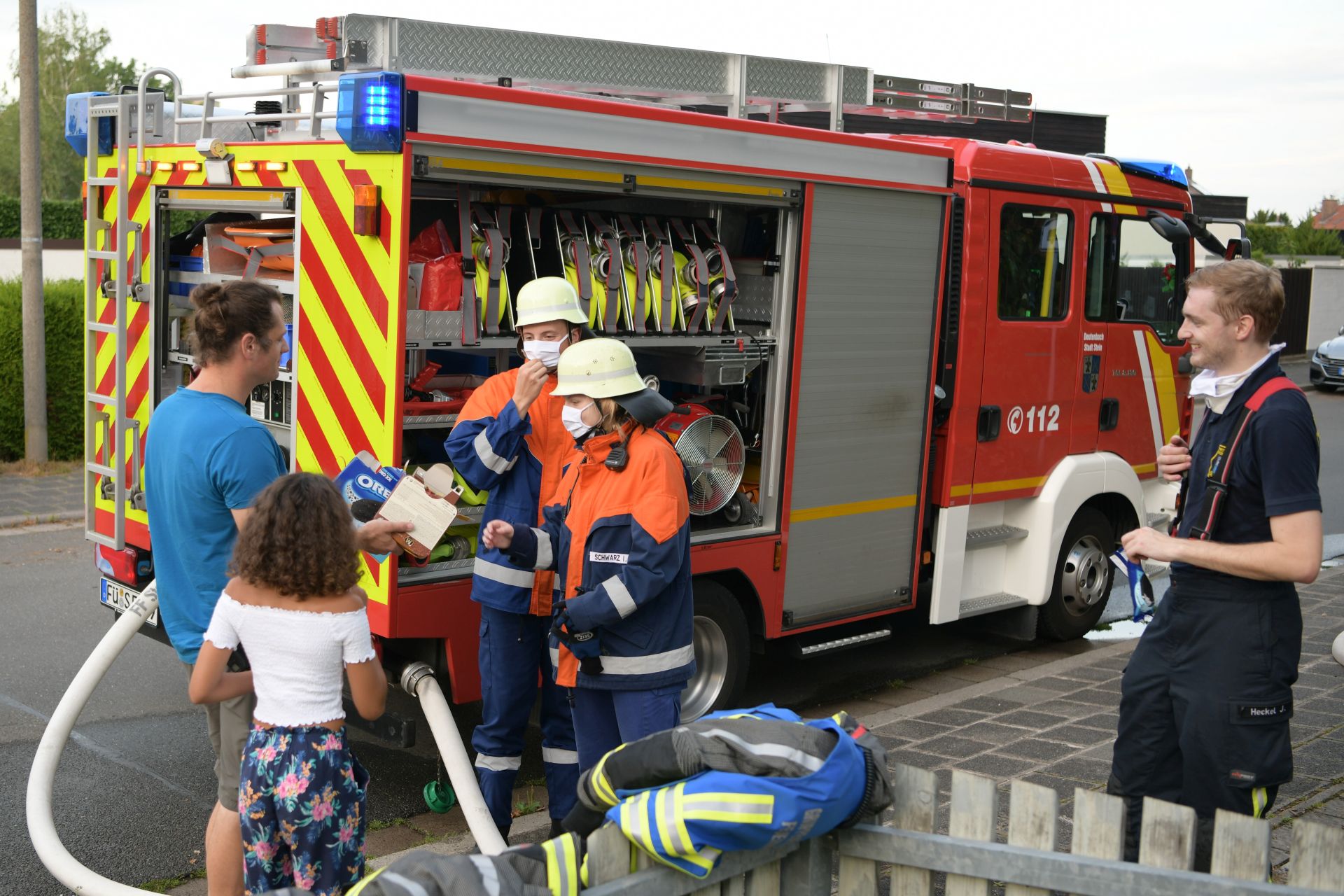 Und aufgrund der Hitze gab es vom ehemaligen Jugendwart und einer Angehörigen der Löschdrachen, die sich schon auf ihren Übertritt in die Jugendfeuerwehr freut, eine willkommene Abkühlung!