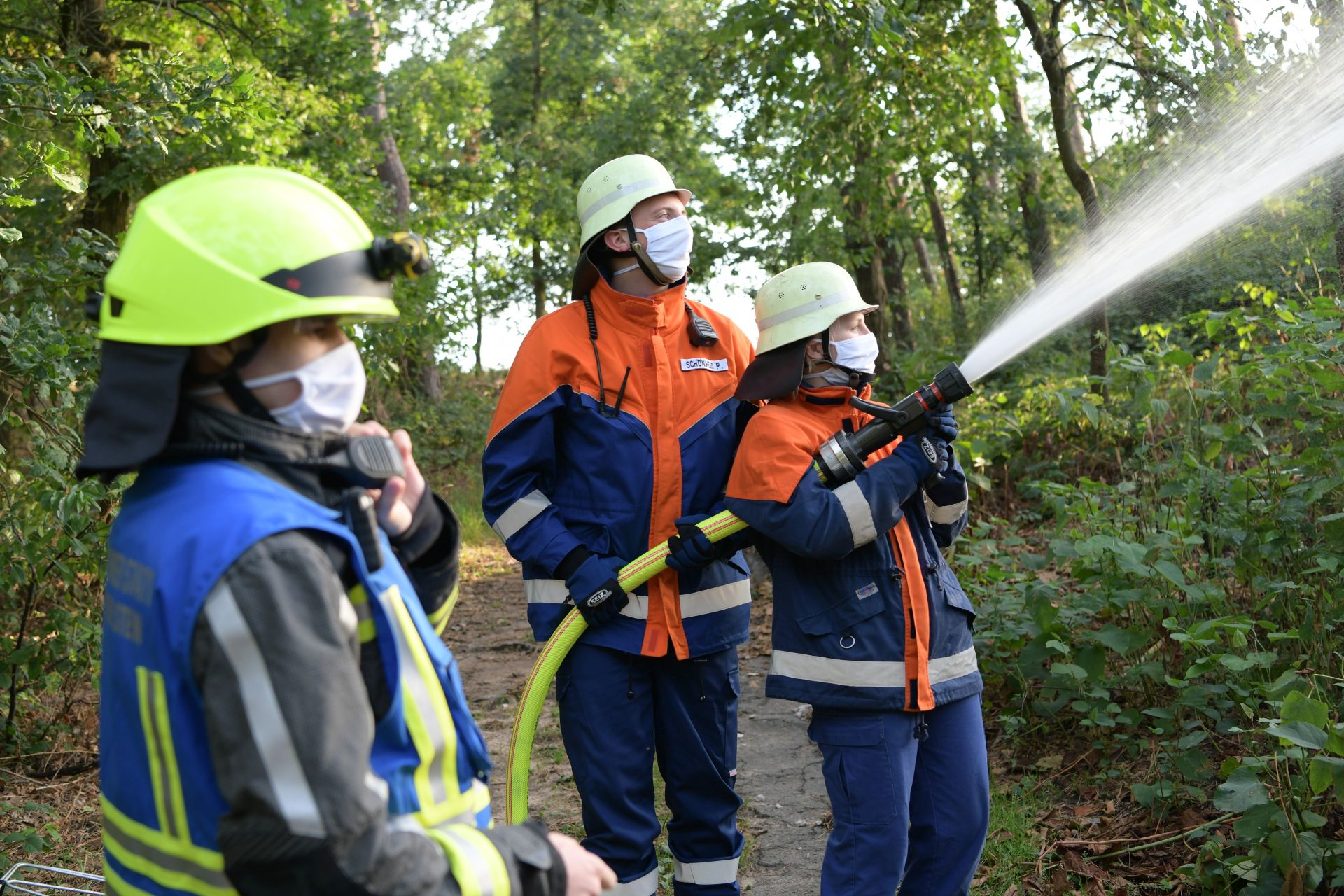 Diesmal stand DAS Thema auf dem Programm, das ganz klassisch mit der Feuerwehr verbunden wird - Brandbekämpfung! Angenommen war ein kleiner Flächenbrand in einem Waldstück.
