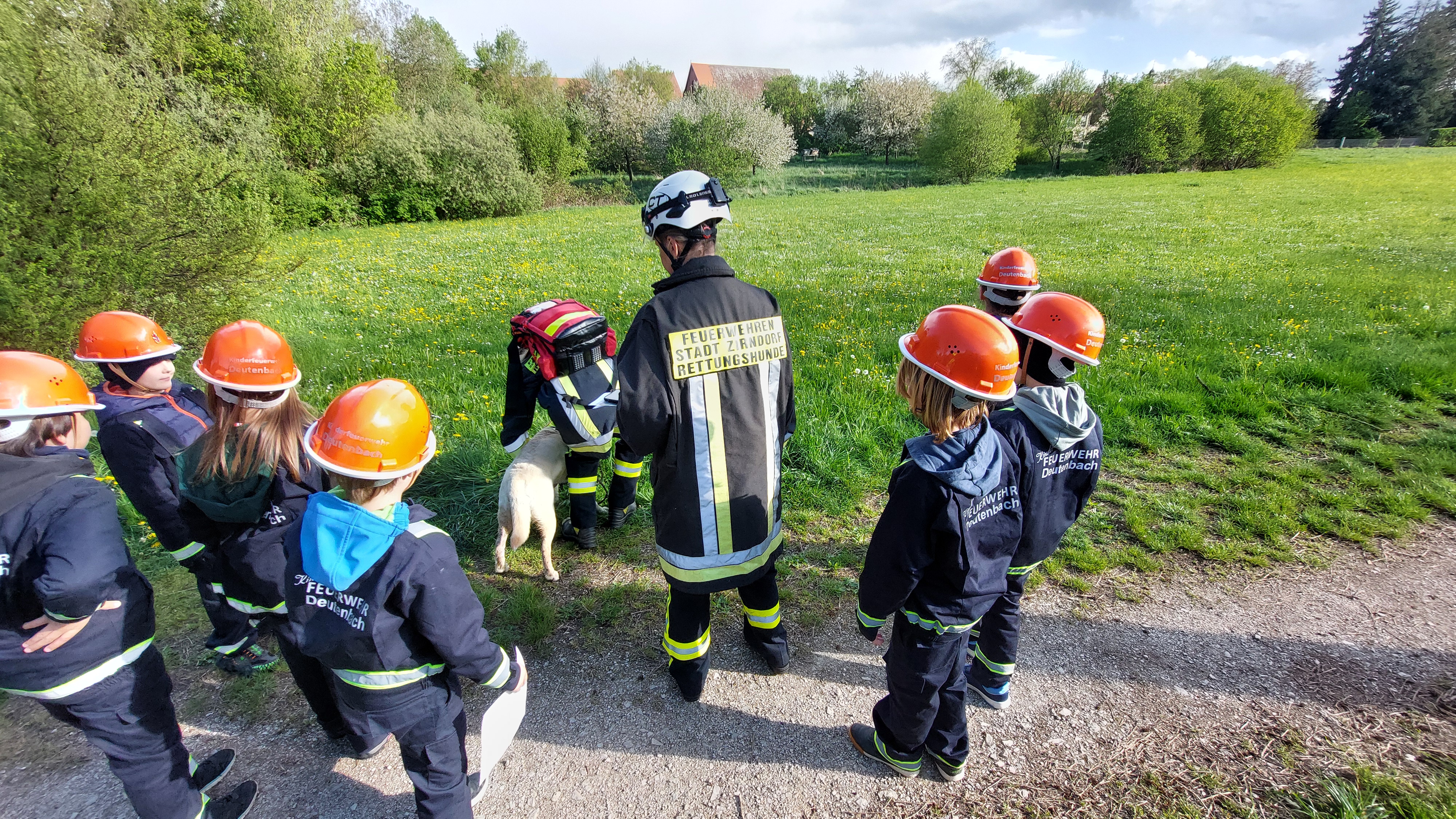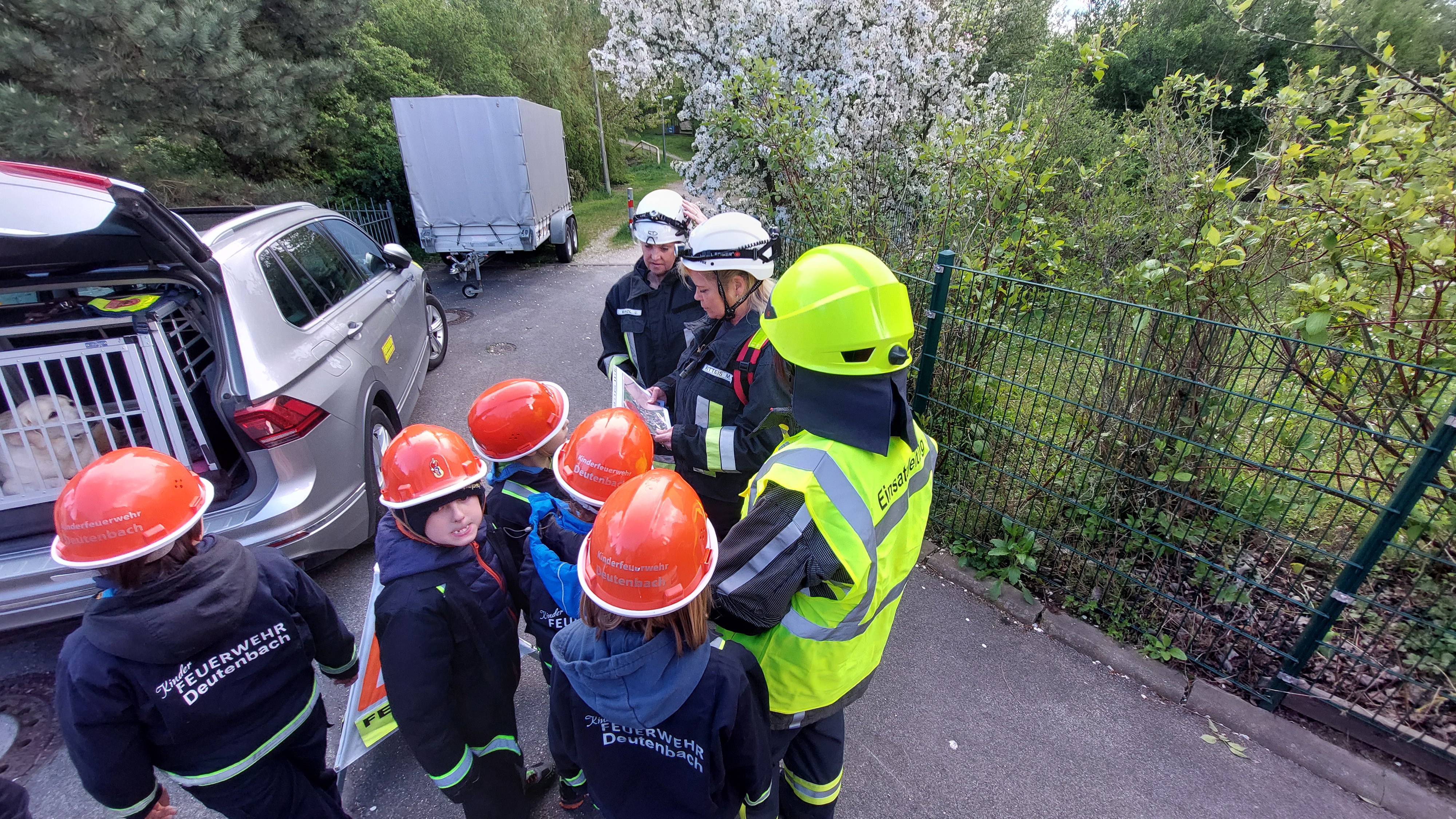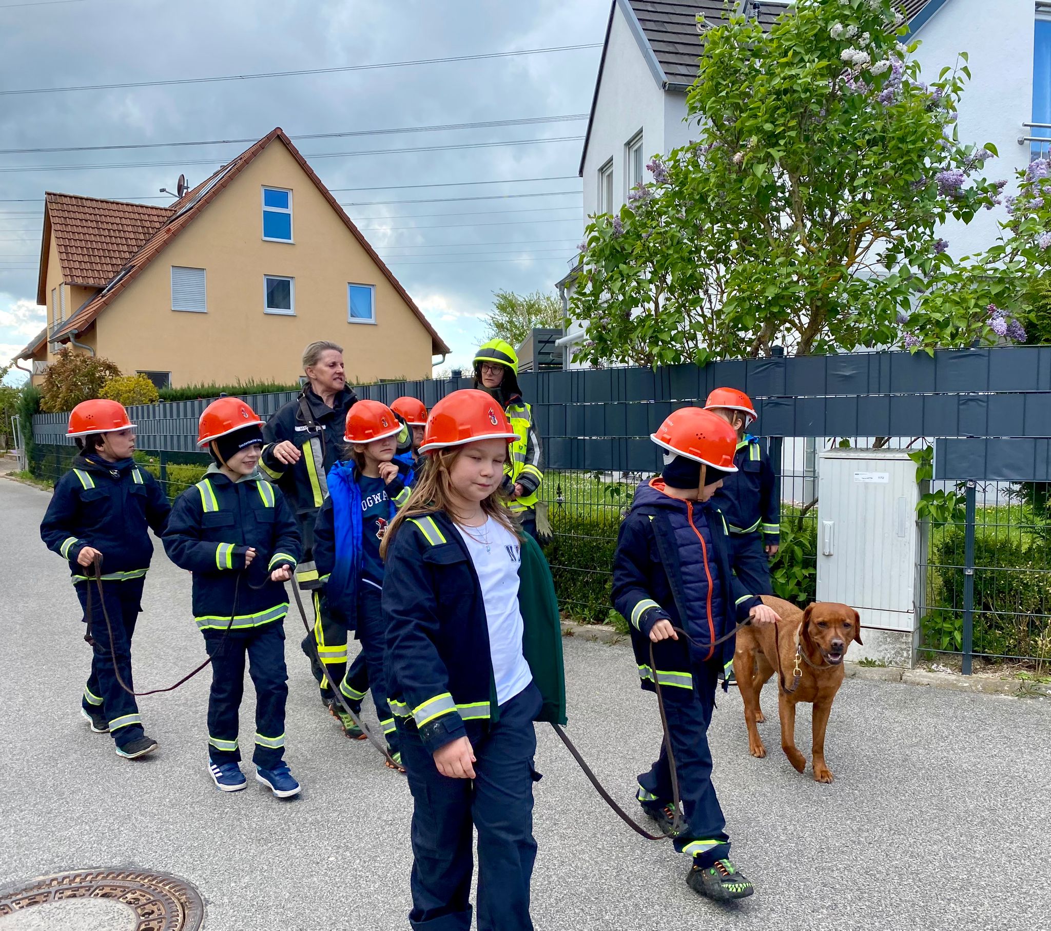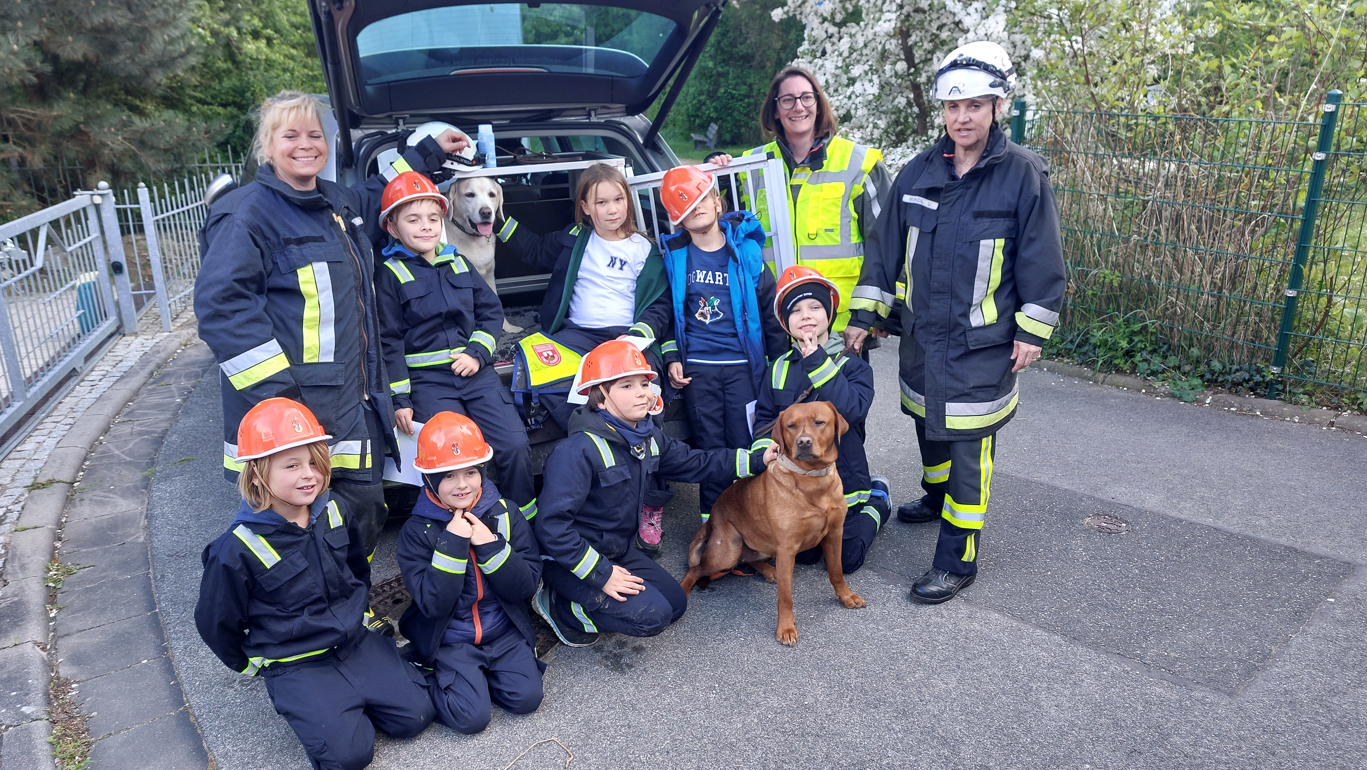 Tierische Kameraden kamen aus der Kreisstadt, um die Löschdrachen der Kinderfeuerwehr bei der Suche nach vermissten Personen zu unterstützen.