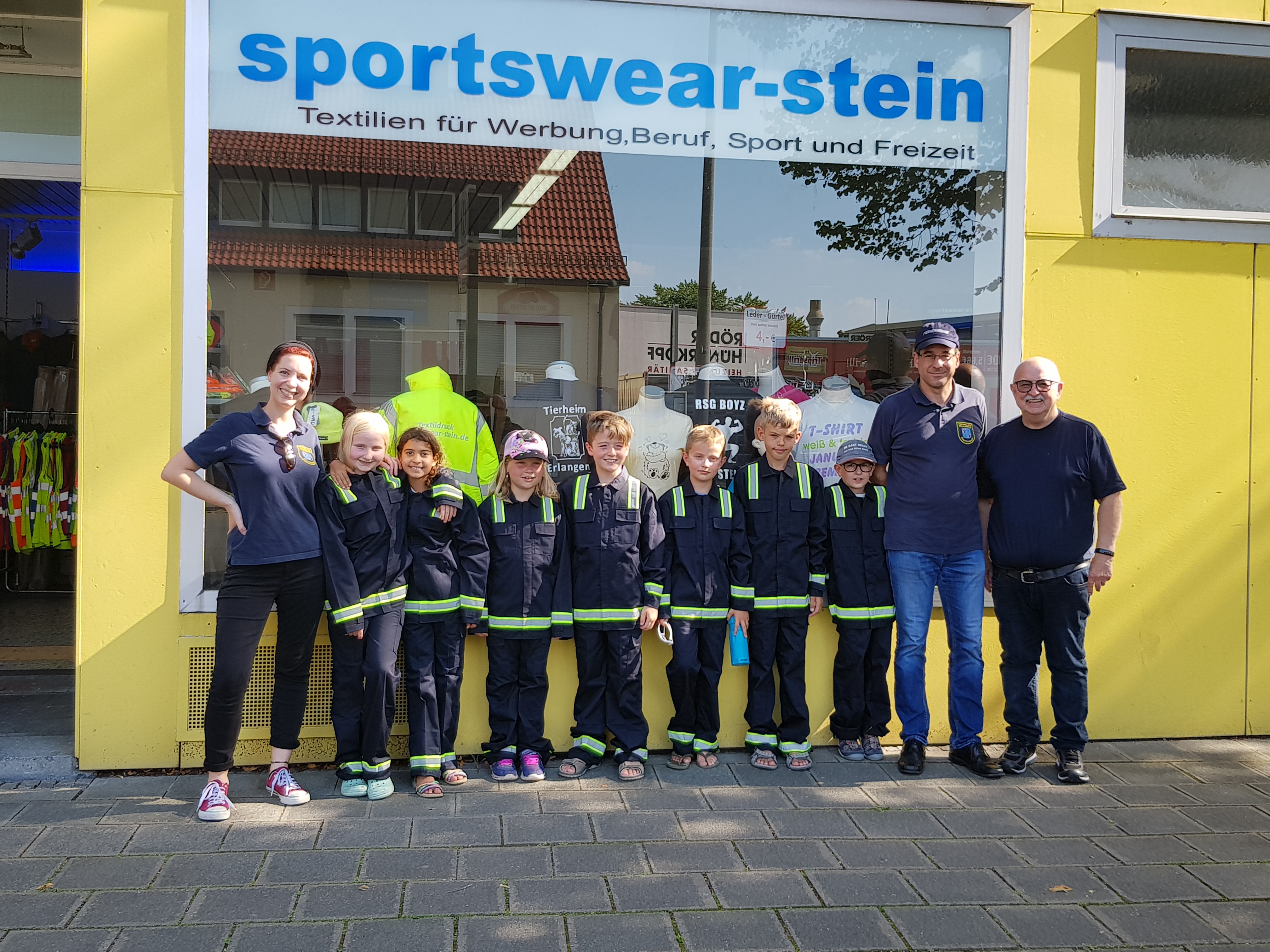 Um auch deutlich und stolz zeigen zu können, wo sie herkommen, hat sich Sportswear Stein erfreulicherweise wieder sofort bereit erklärt, einen reflektierenden Aufdruck "Kinder-Feuerwehr Deutenbach" zu sponsoren.