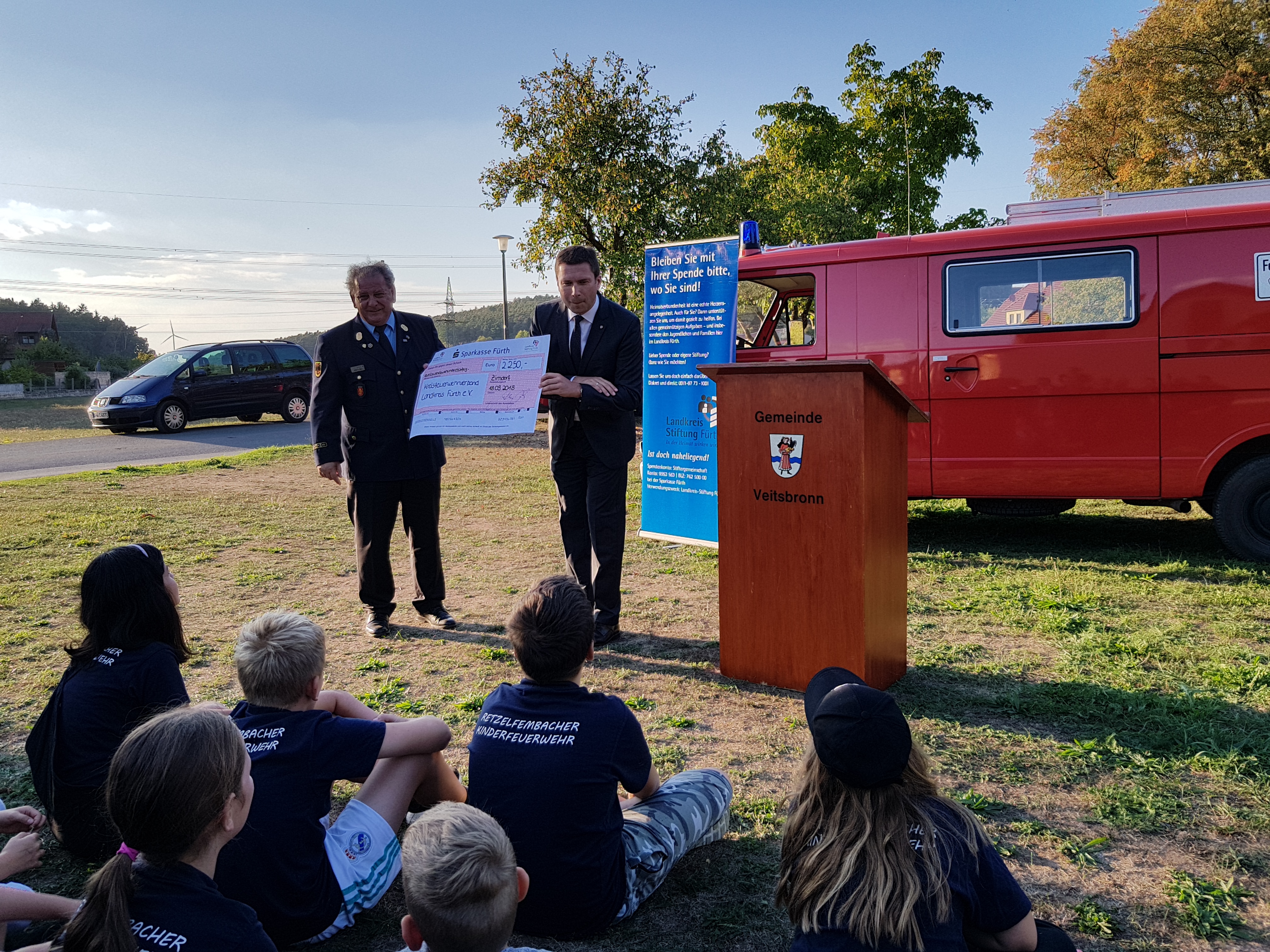 Dort wurde von Landrat Matthias Dießl als Vorsitzendem des Stiftungsausschußes der Landkreisstiftung eine Spende in Höhe von 2.250 Euro an den Kreisfeuerwehrverband übergeben.